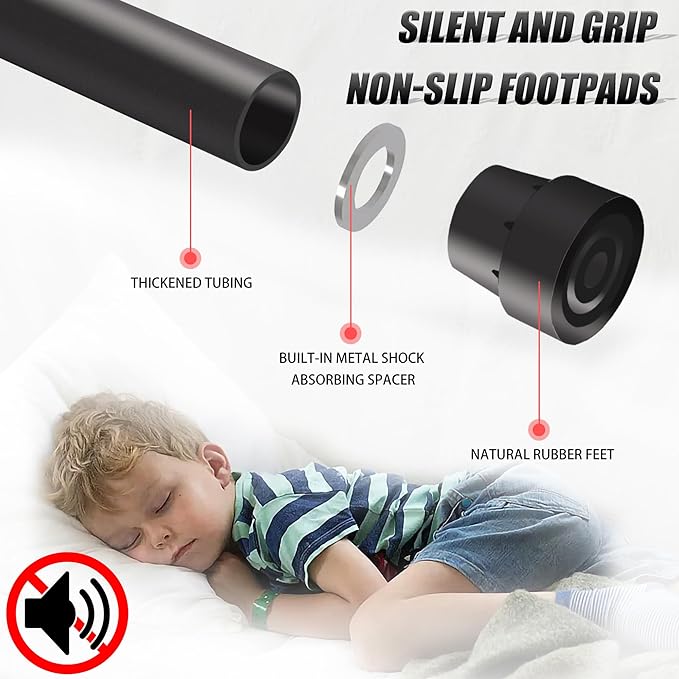 - ✅【Safe and Comfortable 】:Newan 6 legs covered with anti-slid rubber cap,There is a little ingenious washer inside the rubber leg caps that keep the leg itself from cutting through the rubber cap after so many uses and body weight pushing down on the metal leg caps and cutting through,make the trampoline reduces noise in maximum extent and more stable grip for safety and non-slip and protecting the floor.It is quiet so You can watch TV while working on the rebounder.