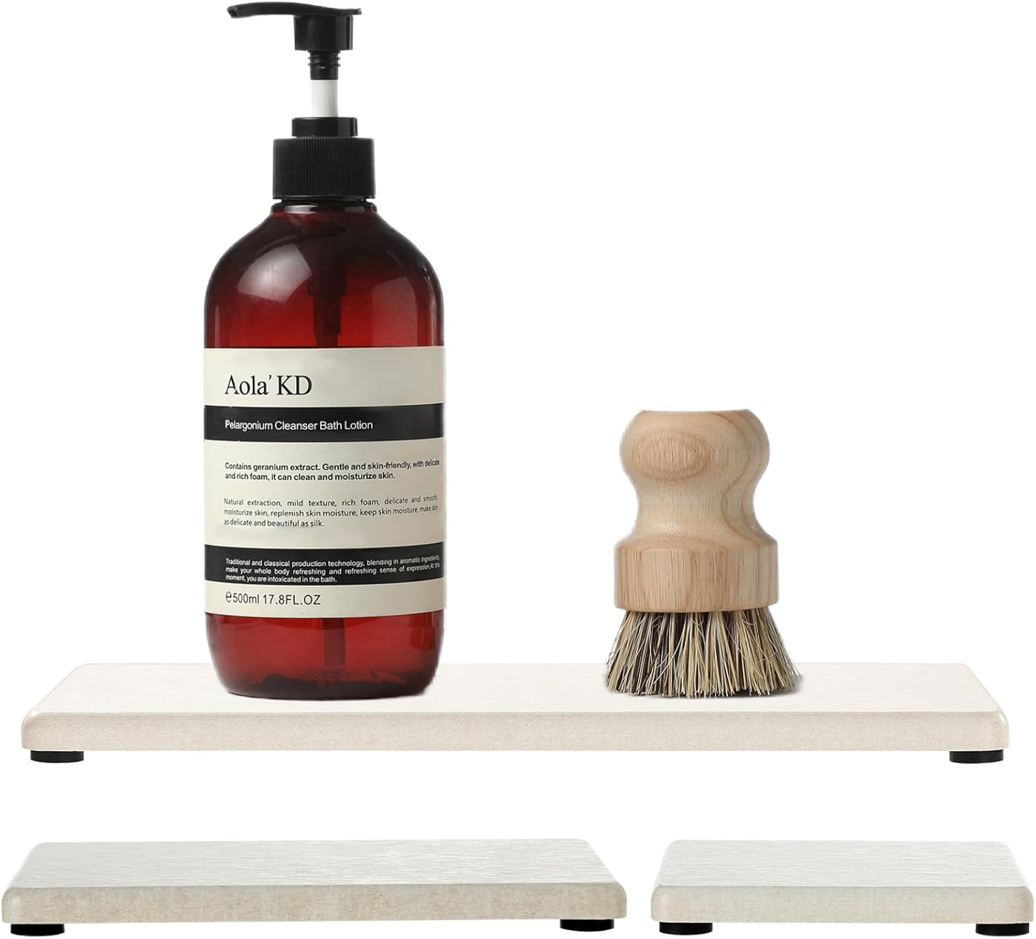 3PCS Bathroom Sink Vanity Trays, Quick Stone Drying Mat Dish Soap Dispenser Sponge Holder for Kitchen Counter, Diatomaceous Earth Water Absorbing Caddy Organizer, Beige