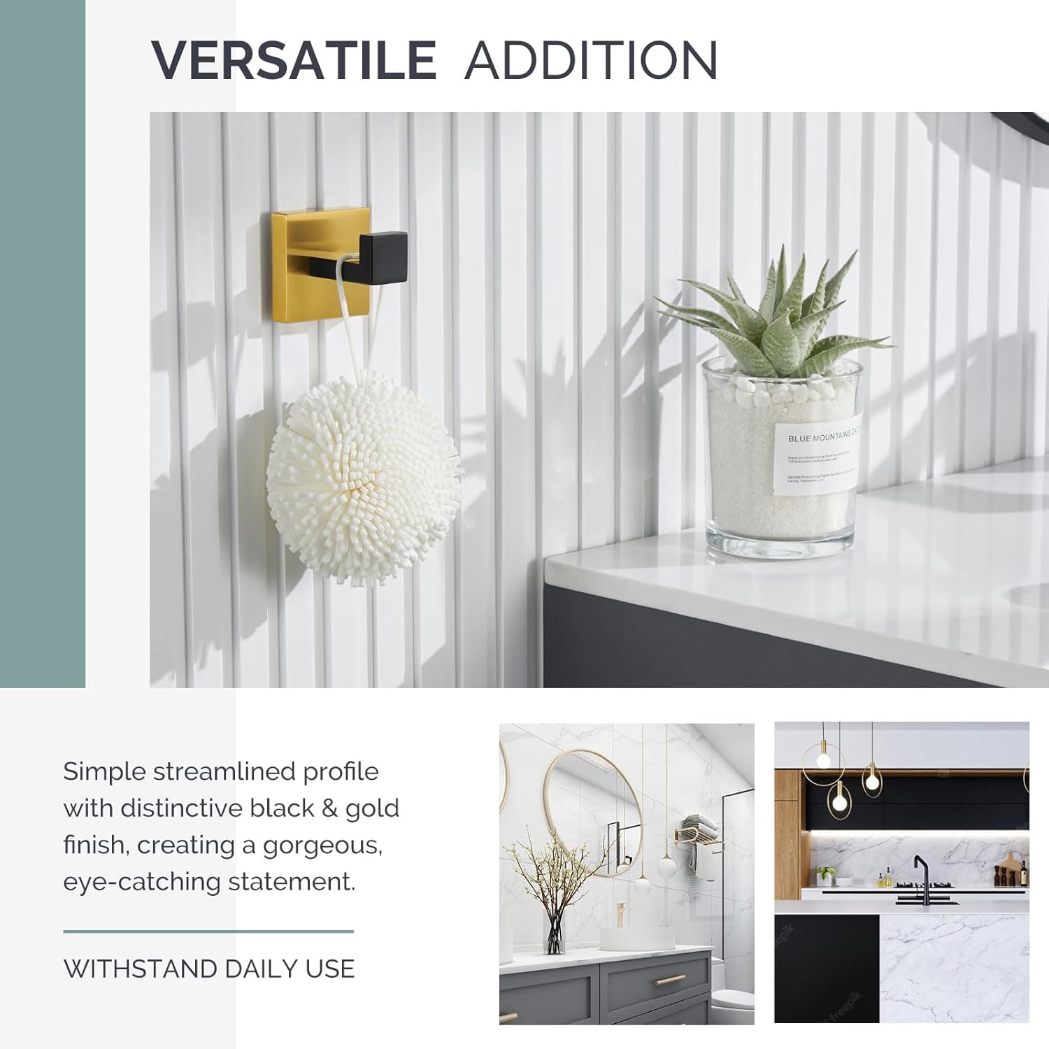 - FASHION-FORWARD ACCENT: unassuming matte black with gorgeous brushed gold combined for a distinctive profile, clean simple lines coordinate seamlessly with different fixtures