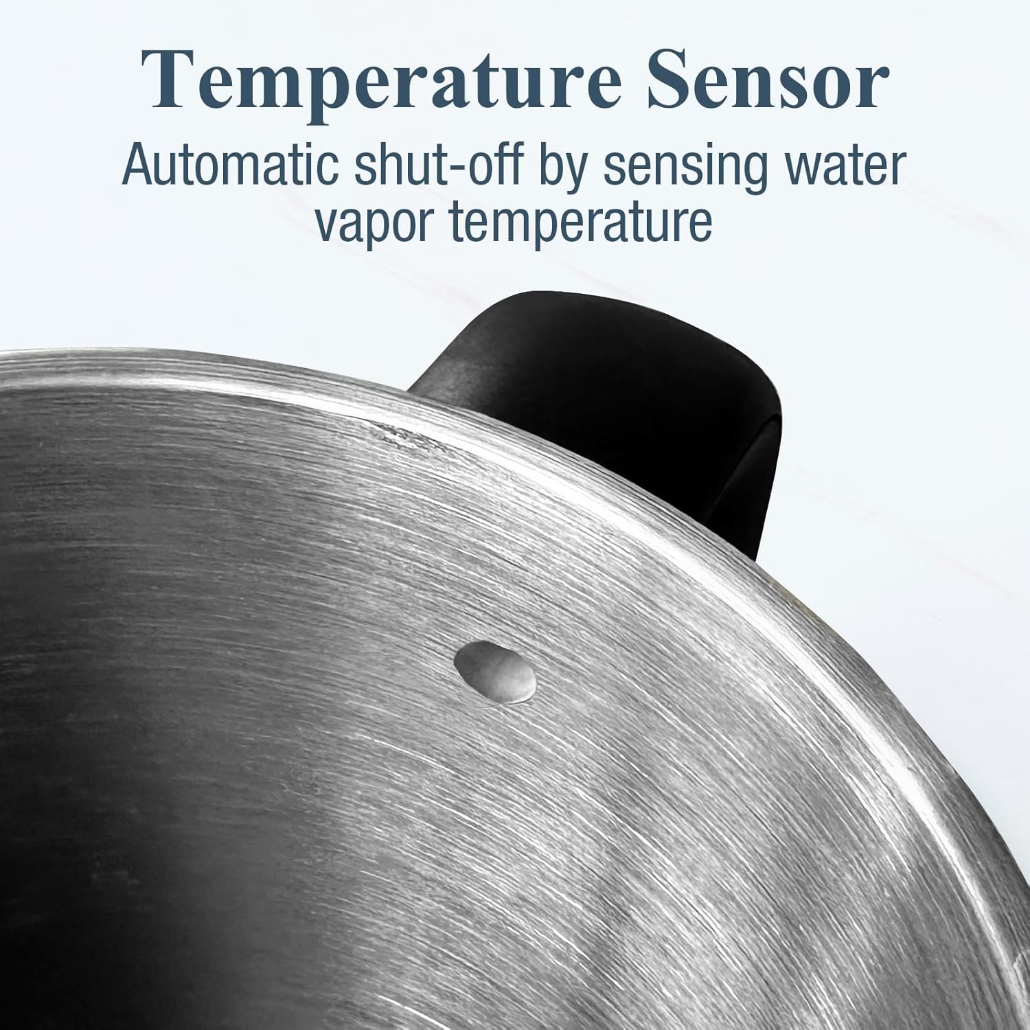 - 【Auto Shut-Off and Boil-Dry Protection】This tea kettle electric featured with boil-dry protection and auto shut-off, will automatically switch off if there isn't enough water inside or when the water reaches the boiling point. After shutdown, it enters standby mode, ready for your next boil, making it a dependable appliance for everyday use.
