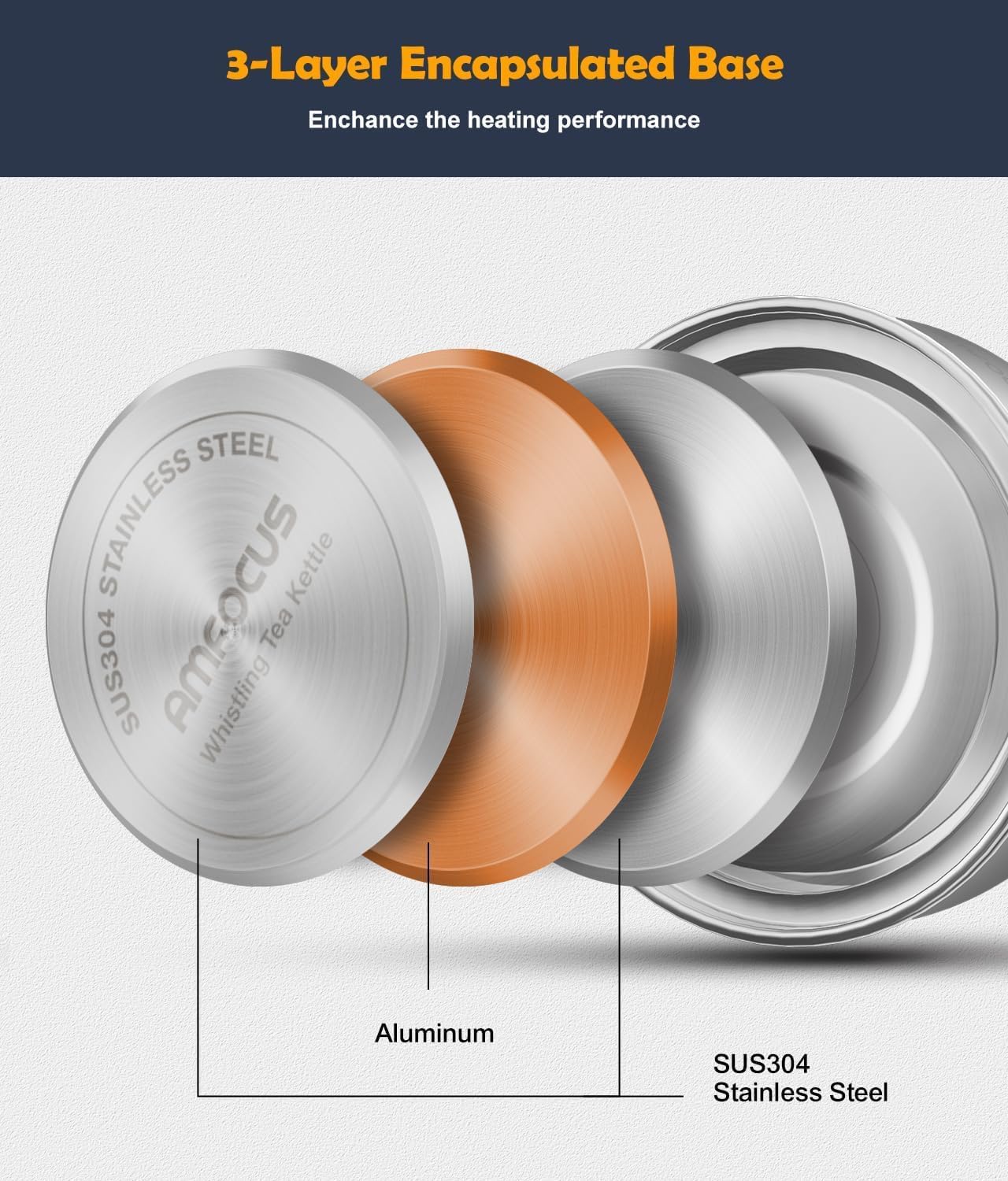 - ✔Ergonomic Designed Handle: Whistling teapot with an ergonomically handle, non-slip design makes pouring and filling easier, also comfortable to hold.(Note: please use a protect-holder in your hand to touch the handle if the water has just reached boil) Also it is foldable, save space for storage.