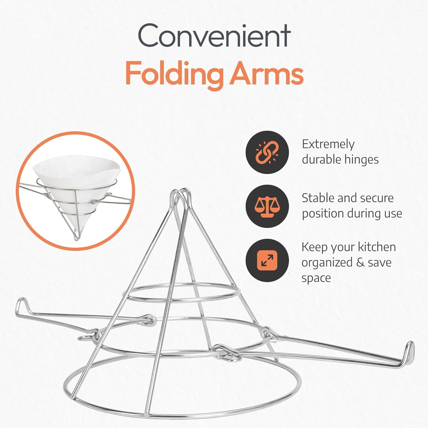 - COMMERCIAL KITCHEN GRADE - Perfect for both home kitchens and professional restaurants, this cone filter holder stand is a must-have for any cook. Ideal as a deep fryer oil filter holder or maple syrup filter stand, it ensures your recipes stay pure and delicious, maintaining the quality and taste you expect from your deep frying tasks.