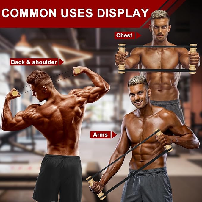Upgraded Rip Stick - Wooden Rpistick with 6 Elastic Band, Arm Exercise Equipment, Shoulder and Resistance Training, Chest and Core Workout Equipment, Muscle Building Accessories, Home, Gym, Adjustable