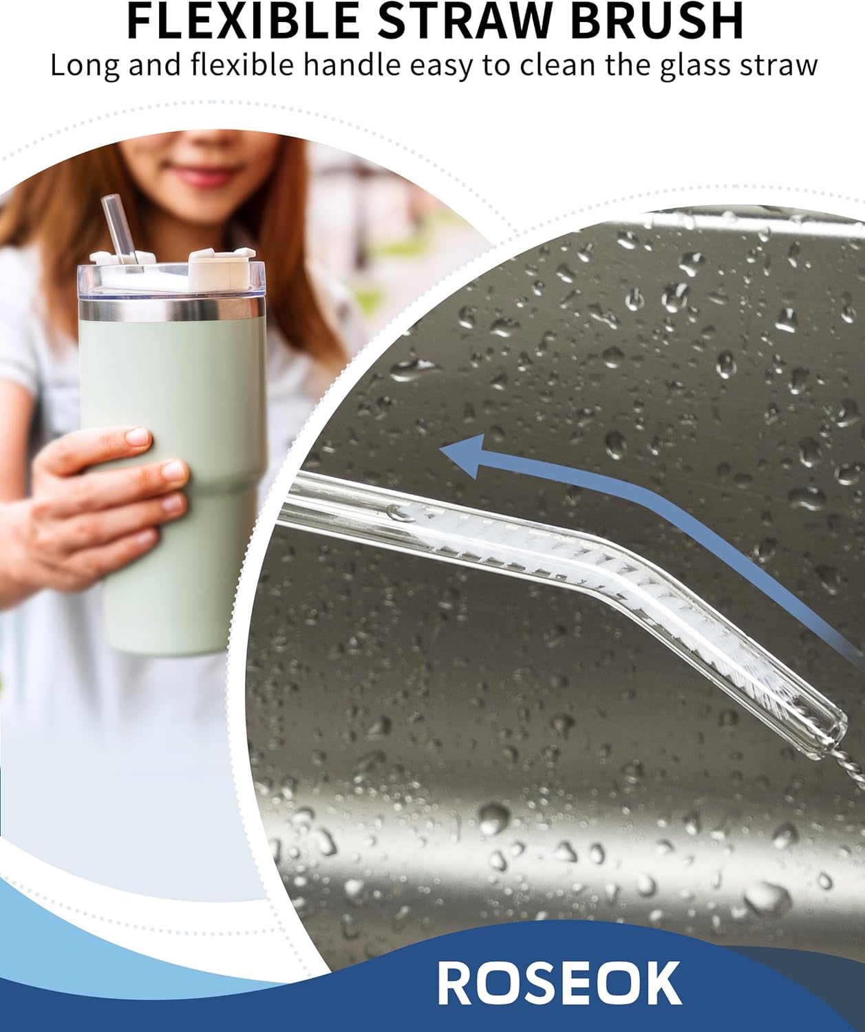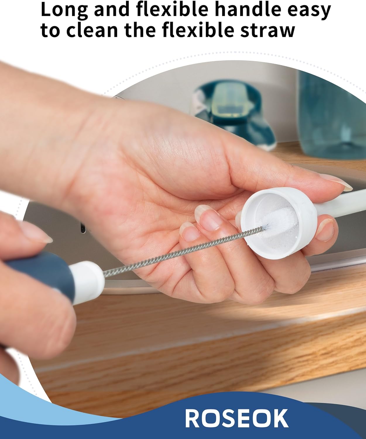 - TWO IN ONE: 2 in 1 bottle brush and straw brush designed with a 304 stainless steel straw brush stores in the larger one. Unscrew the end of thermoplastic rubber handle, there’s a 10.2 inch straw brush.The straw brush is long and flexible,so it can be used to clean the straw.