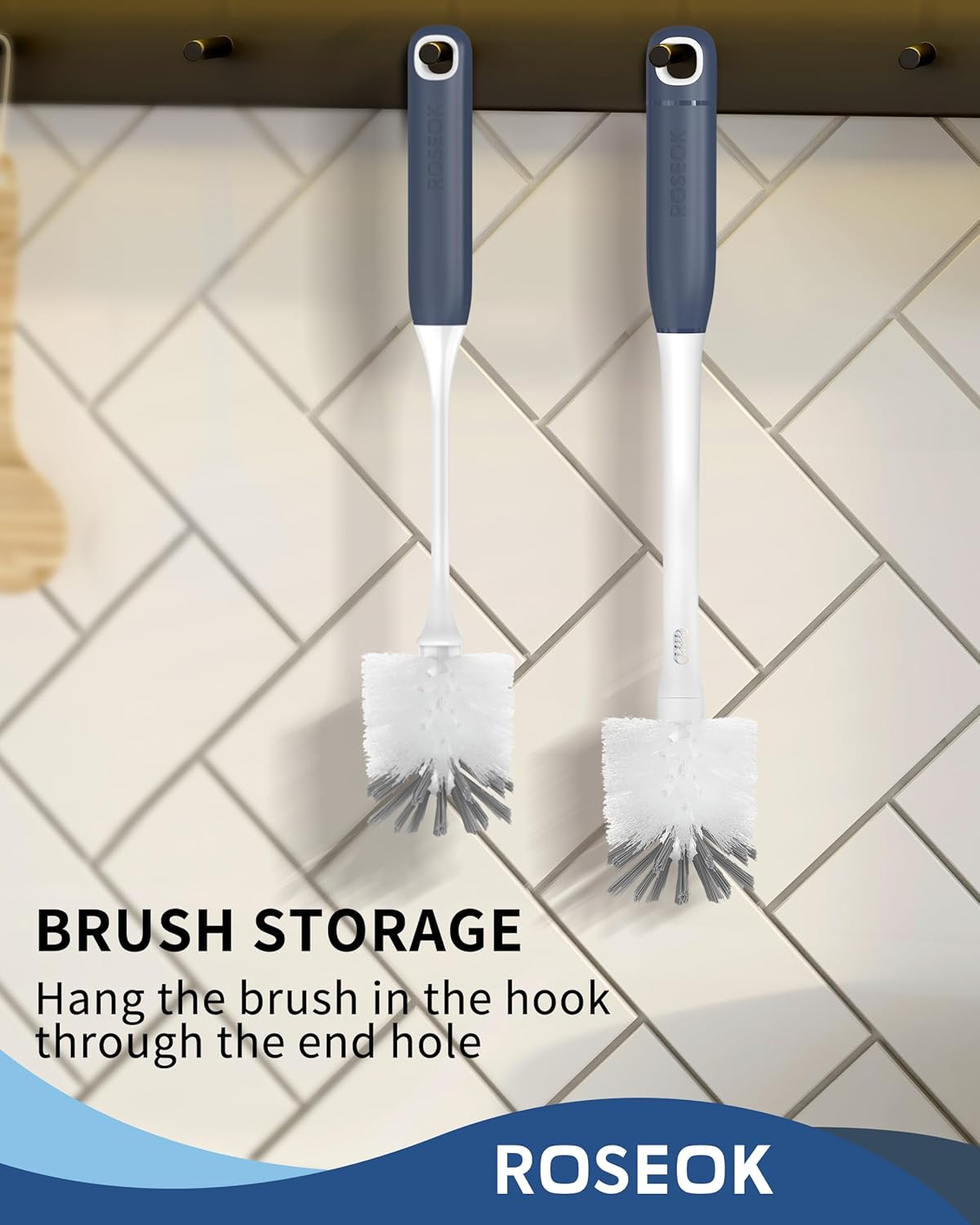 - EASY TO CLEAN AND HANG: The long handle bottle brush is 13.6 inch, easy to reach the bottom of bottles to clean the corner. The brush is also easy to clean, just rinse with water, and it can also be washed in the dishwasher. There's a hole at the end of the handle. You can hang it on the hook to dry after cleaning without taking up extra space in the kitchen.