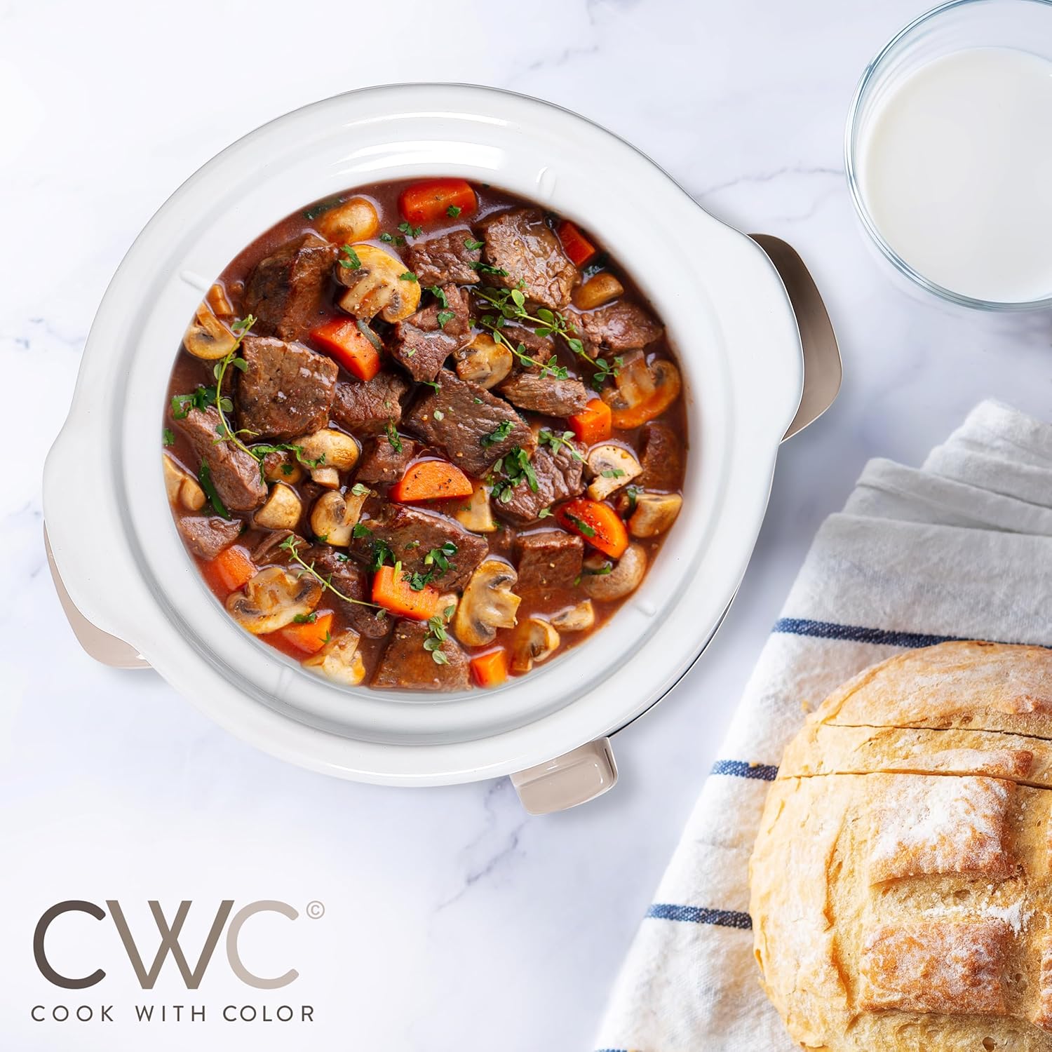 COOK WITH COLOR 2QT Mini Electric Round Slow Cooker - Adjustable Settings, Removable Stoneware Pot, Tempered Glass Lid, Dishwasher Safe, Cool-Touch Side Handles, Sand
