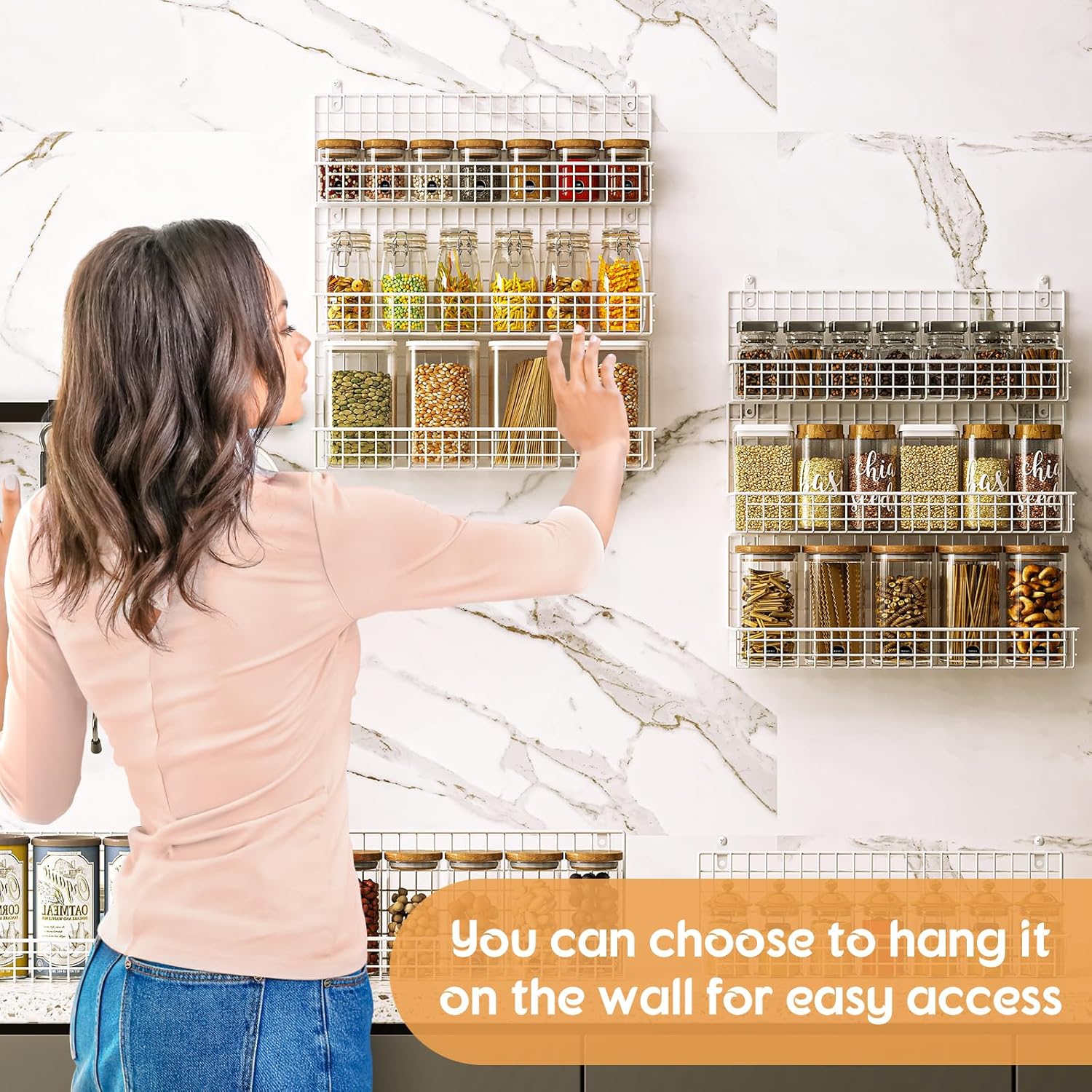 - Door Hook Compatibility: Includes a door hook for added convenience, allowing you to hang the rack on the inside of your pantry or cabinet door. And with the non-marking stickers there is no need to worry about the product wobbling erratically.