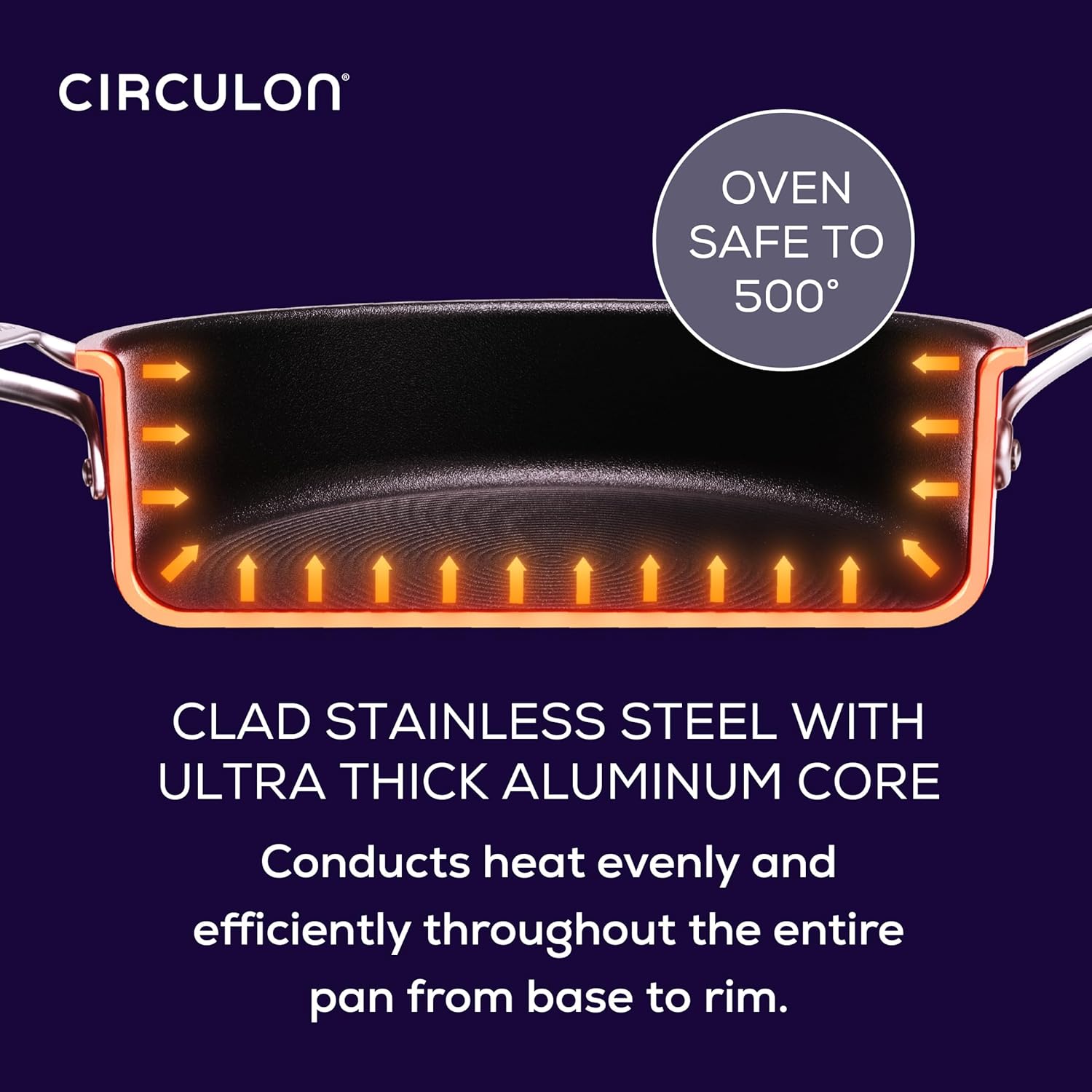 Circulon C1 Series Clad Stainless Steel with ScratchDefense Technology Cookware Nonstick Induction Frying Pan/Skillet with Lid, Metal Utensil Safe, 12.5 Inch Fry Pan - Polished Stainless Steel