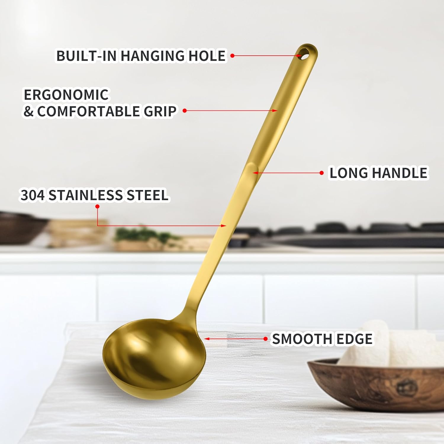- Ergonomic Design: With the easy-grip & anti-slip handle, our cooking utensils set provides us with a comfortable experience. The long handle can resist heat and prevent hot oil from splashing on your hands.