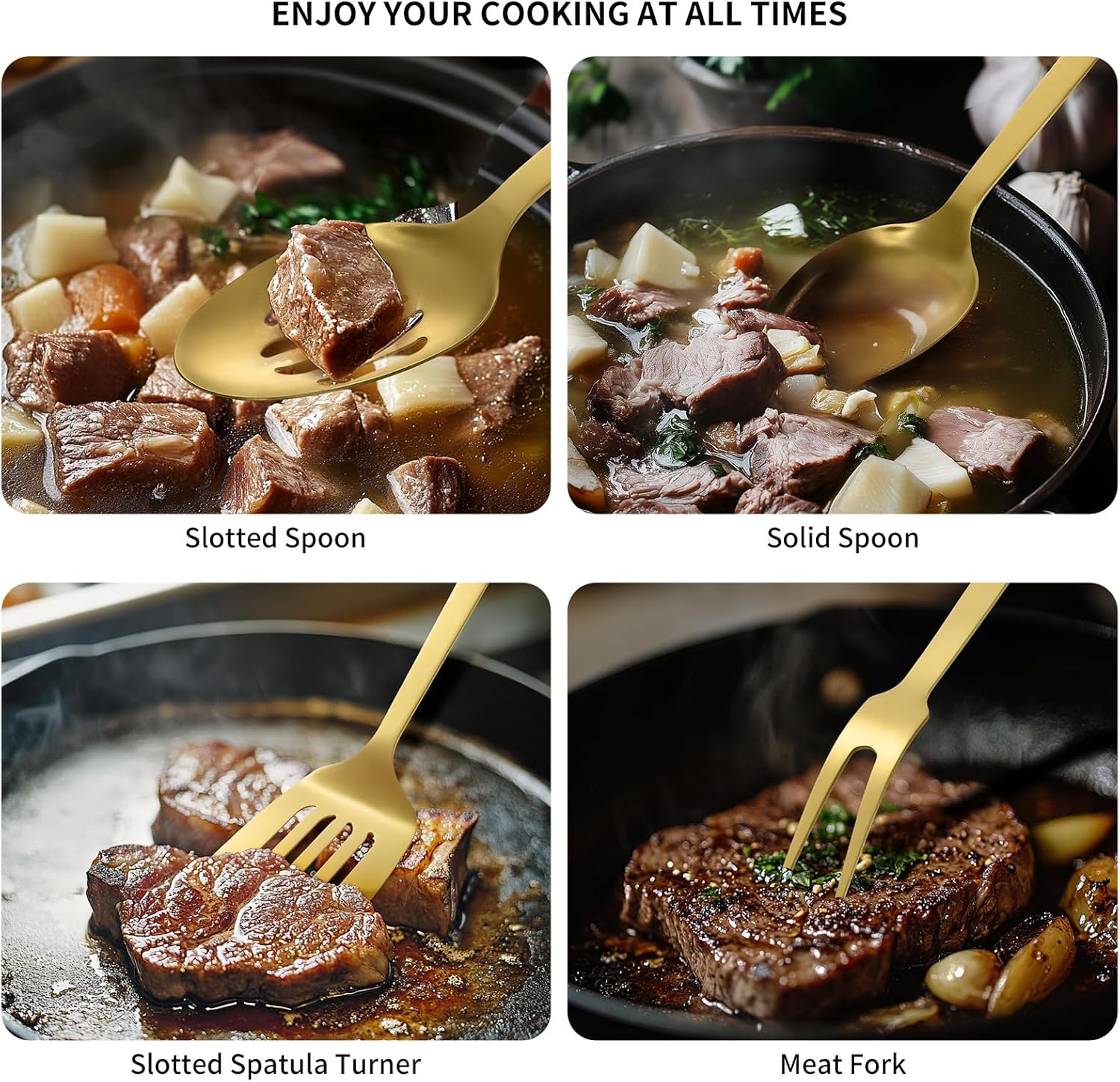 - Included Components : 8 Cooking Utensils Gold