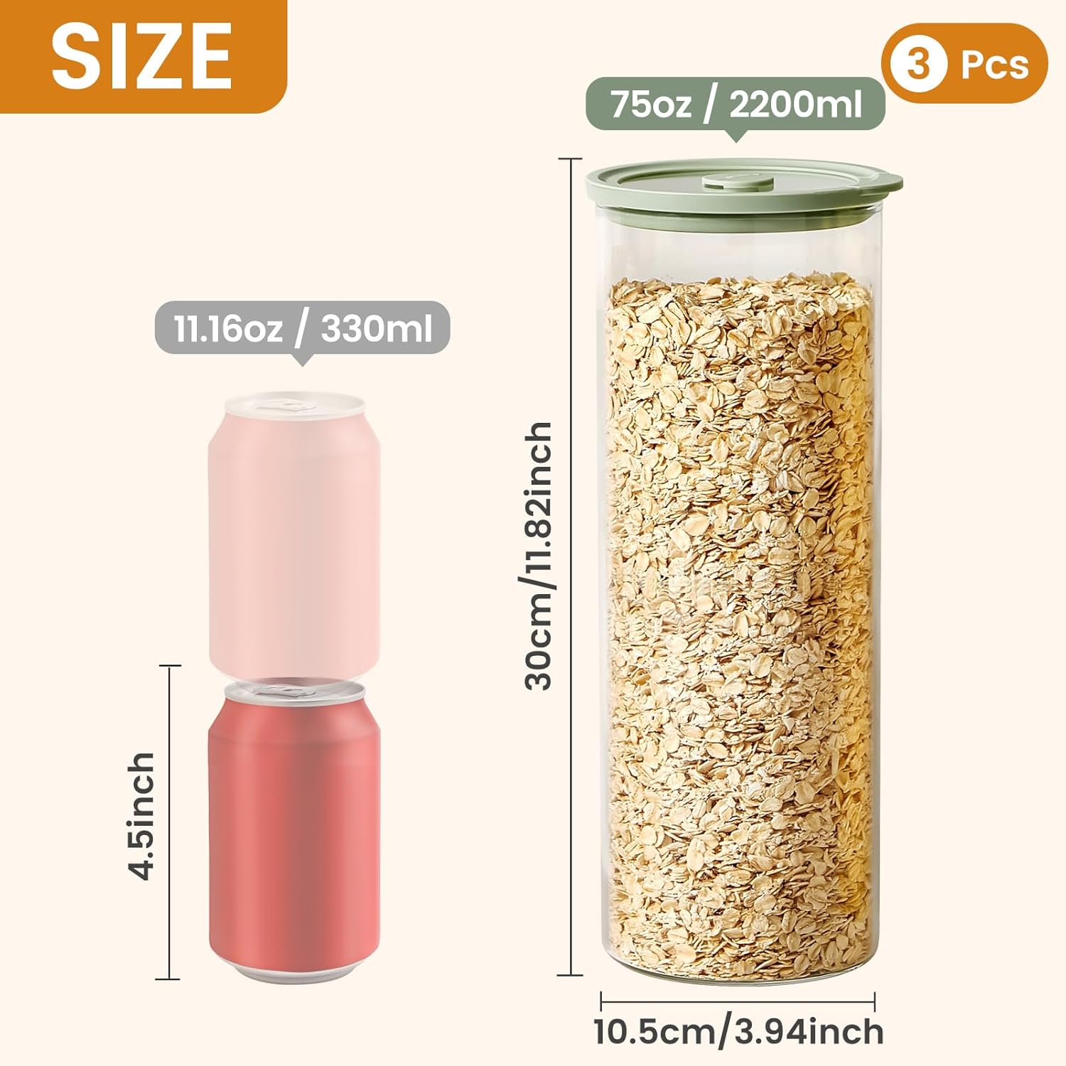 - 【Ideal for Storing Large Amounts of Food】This storage jar is up to 11 inches high and the width increases to 4 inches, which is large enough and perfect for storing different types of dry goods, including pasta, noodles, flour,sugar, cereal and more. Keep your kitchen neat and organized and away from clutter.