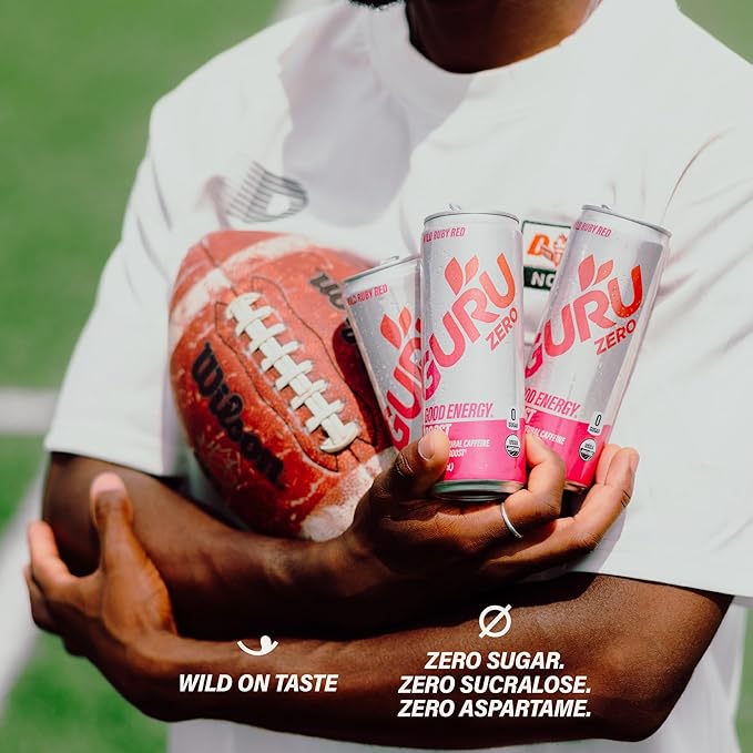 - 140 MG OF NATURAL CAFFEINE THAT LASTS: Use as pre workout drinks or anytime you need a pick me up. GURU Zero has 140 mg of caffeine per can, supports physical vitality, and provides sustained energy with naturally occurring caffeine from green tea.