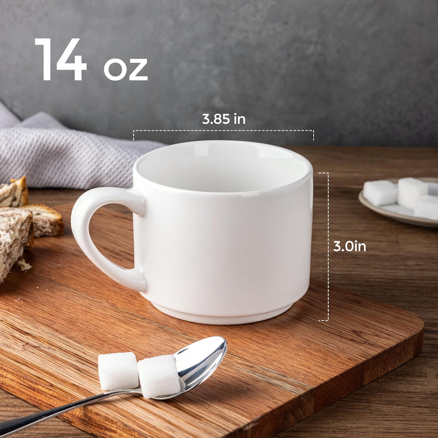 GBHOME 14 OZ Coffee Mugs Set of 6, Stackable Ceramic Mugs for Men, Women, Modern Coffee Mugs With Stable Base for Latte,Tea,Cappuccino. Dishwasher & Microwave Safe, White