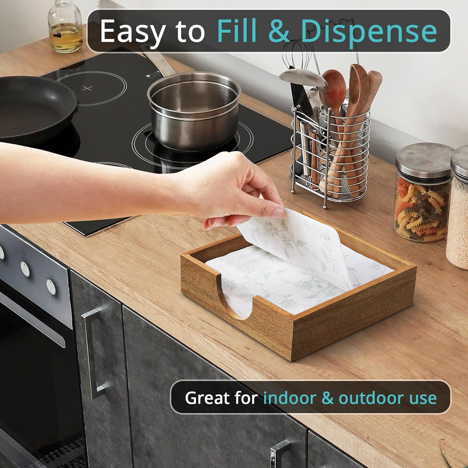 Acacia Wood Napkin Holder for Table, Napkins Holders For Paper Napkins, Flat Napkin Holder for Luncheon, Napkin Holders for Kitchen Dinner Table Decor, Napkin Dispenser for Indoor & Outdoor Use