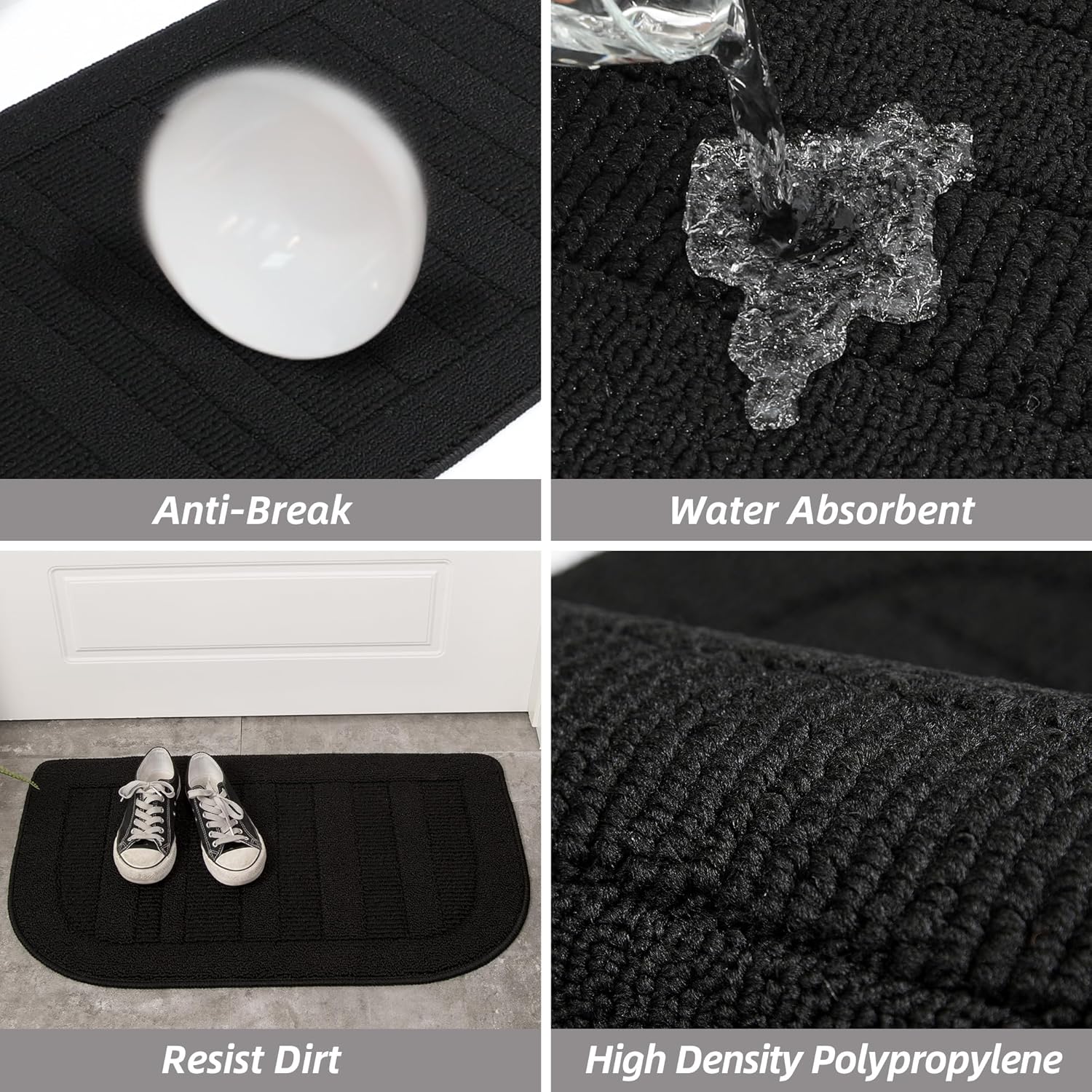 - Stain-resistant: Our kitchen floor mat is made of wear-resisting Polypropylene fibers. The tight sewing makes this kitchen mat set more durable. The rugs for kitchen with great water absorption and stain-resistant properties protect the floor from oil, dampness, sauces or food particles; the slightly raised polypropylene fabric helps to scrap off dirt, dust, grit, mud, sand.