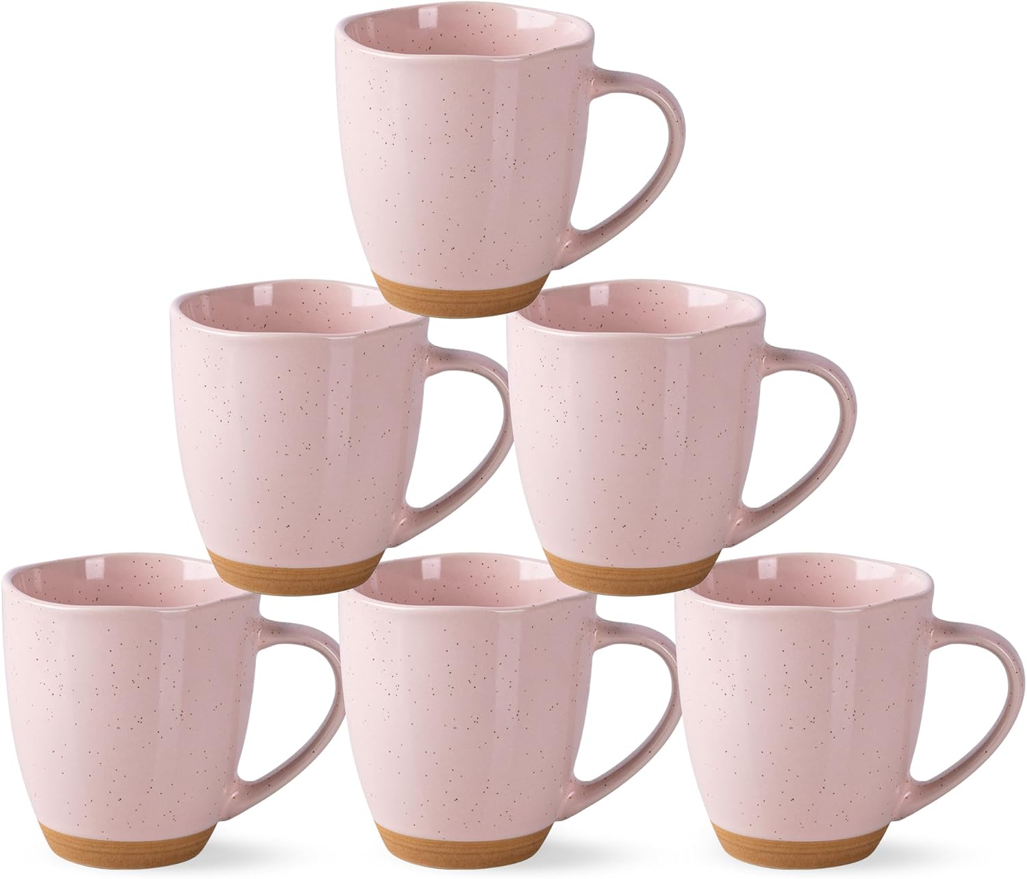 AmorArc 12oz Ceramic Coffee Mugs set of 6, Stylish Coffee Mugs with Rustic Terracotta Underside for Latte/Cappuccino/Milk/Cocoa, Dishwasher&Microwave Safe,