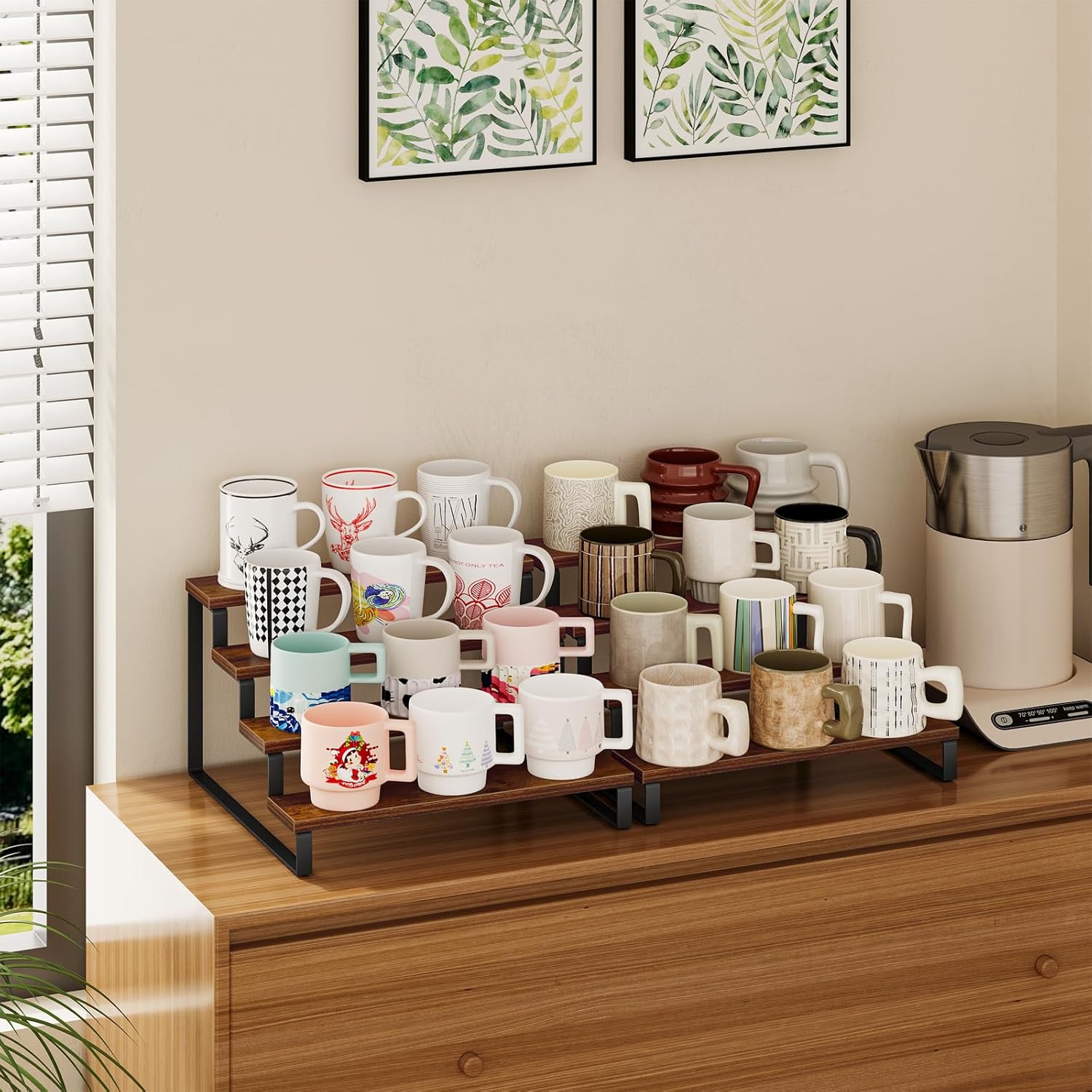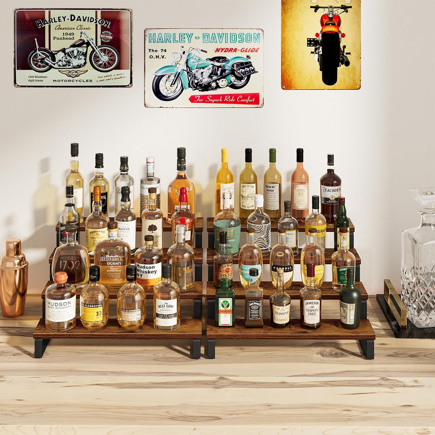 Giikin 4 Tier Spice Rack, Set of 2 Wooden Spice Rack for Countertop, Kitchen Counter Storage Shelves Cupcake Stand Holder Display Stand, Rustic Brown