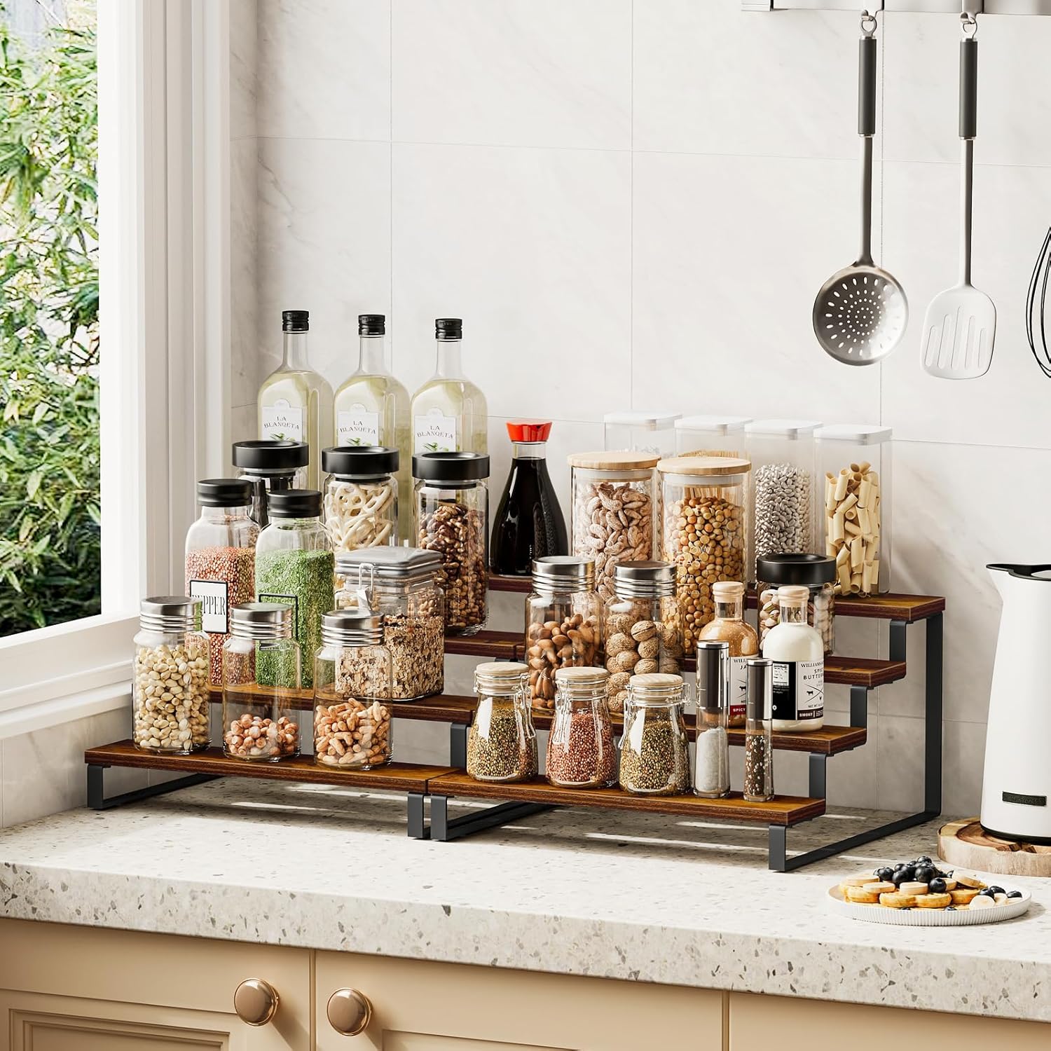 - Easy Access and Visibility: The tiered spice rack design allows for easy access and clear visibility of all your spices, so you can quickly find what you need while cooking. Say goodbye to rummaging through drawers and cupboards.