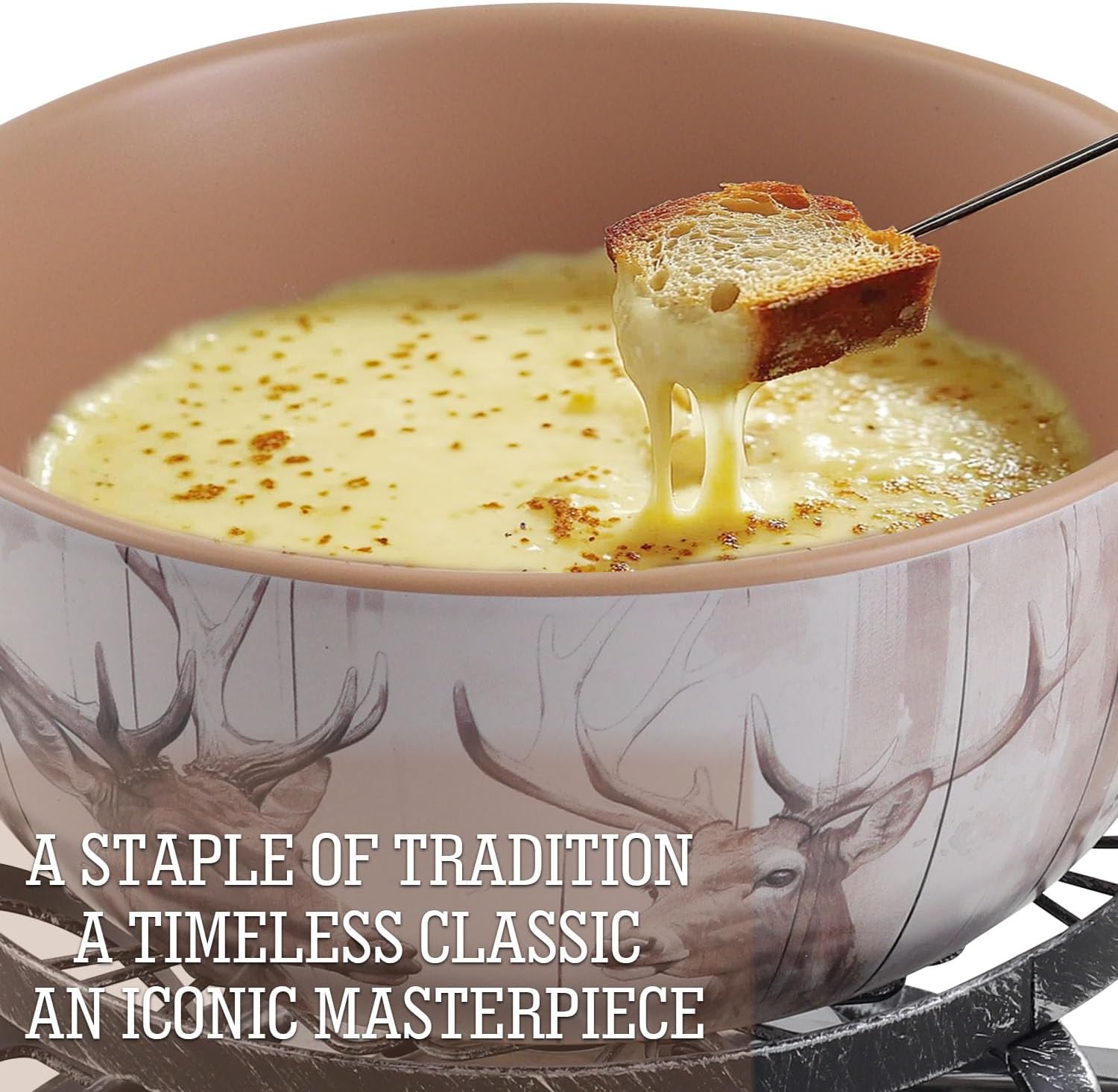 Artestia Swiss Fondue Set for Party - 2L Large Capacity Cheese Fondue Pot Melting Chocolate, Ceramic Fondue Pot, 6 Fondue Forks, Christmas, Wedding Gifts (Forest Duo)