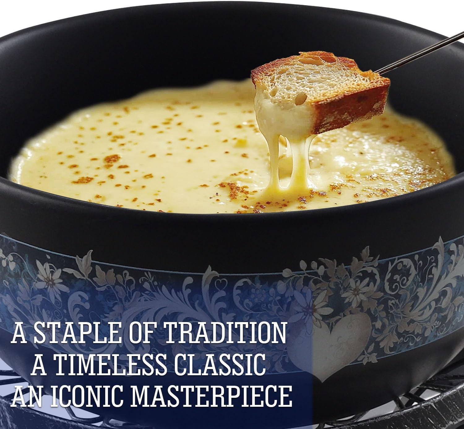 Artestia Swiss Fondue Set for Party - 2L Large Capacity Cheese Fondue Pot Melting Chocolate, Ceramic Fondue Pot, 6 Fondue Forks, Christmas, Wedding Gifts (Enchantment)