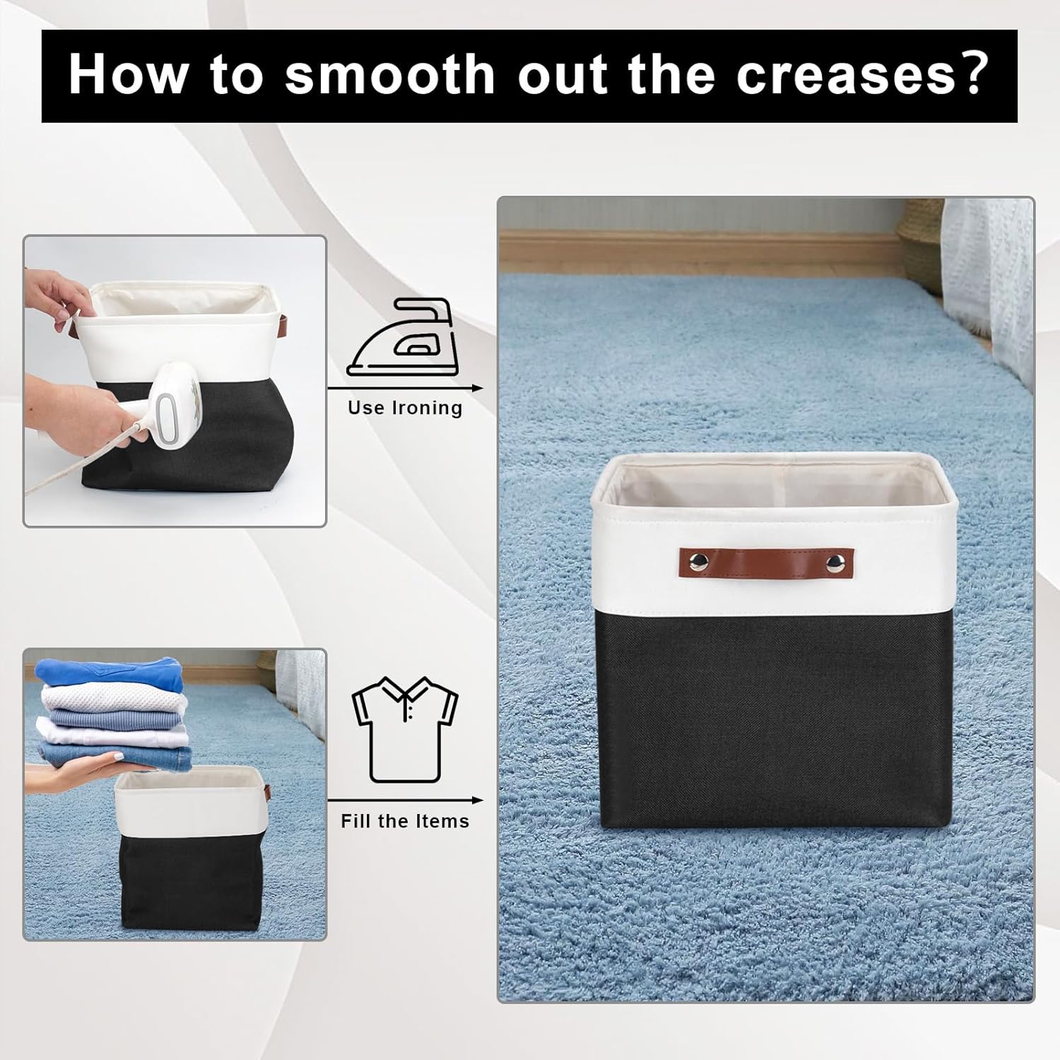 Collapsible Fabric Storage Cubes 11x11 Cube Storage Bins, 4 Pack Closet Baskets Box with Handles for Organizing, Shelf, Toys, Clothes, Home, Office, Nursery (Black&White)