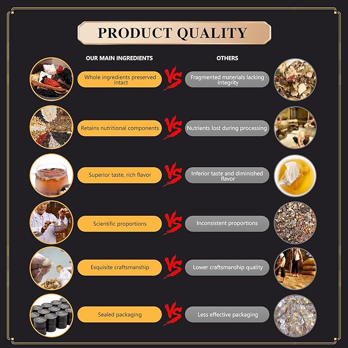 - 【Functionality and Flavor】This herbal tea nourishes the kidneys, tones the liver, enhances vitality, relieves fatigue, and helps release stress. The tea has a rich flavor with natural sweetness, perfectly blending the essence of various herbs, making each sip a delightful experience.