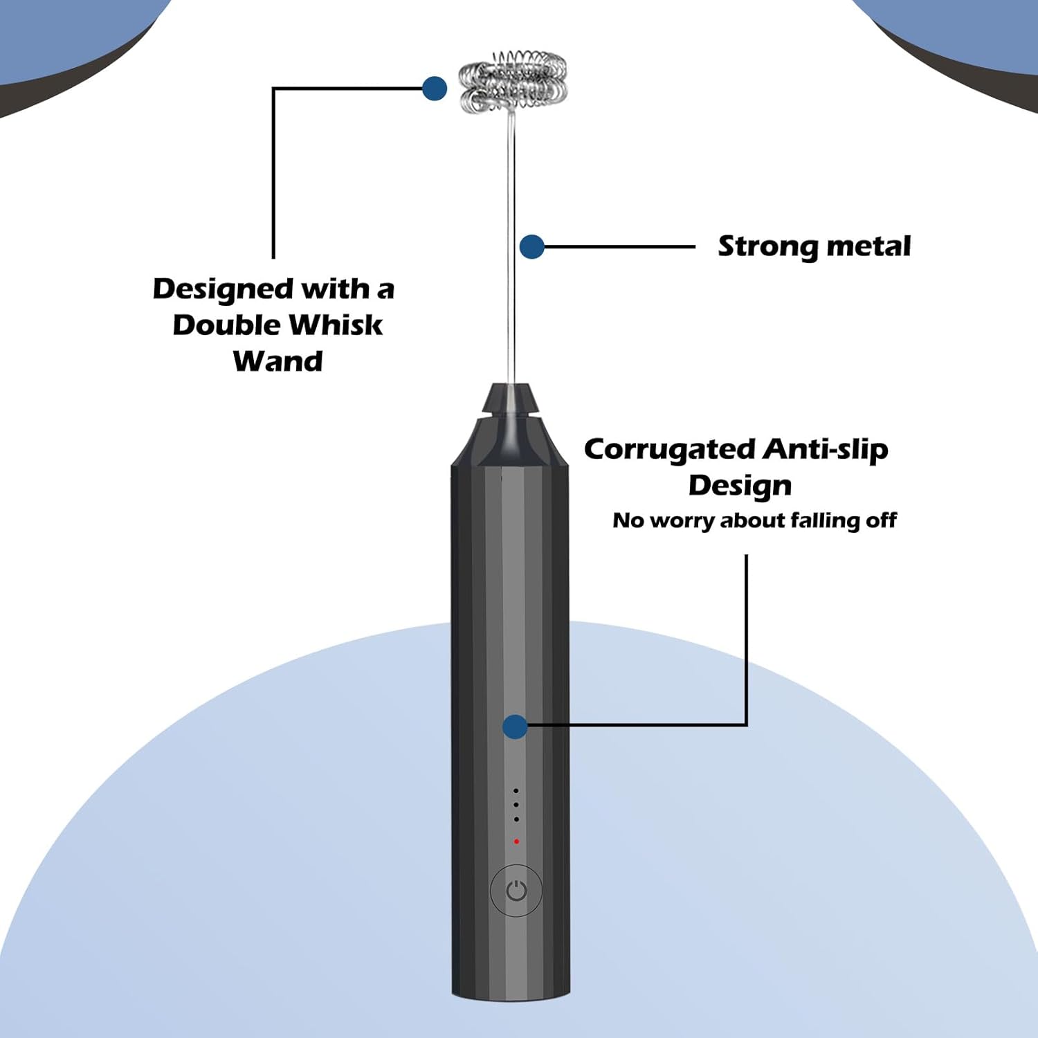 Milk Frother-Handheld Electric Whisk for Coffee, Latte, Matcha, and Hot Chocolate (Plastic body-Built in 1200mAh lithium battery, USB rechargeable) Drink Mixer Handheld, Lightweight & Portable