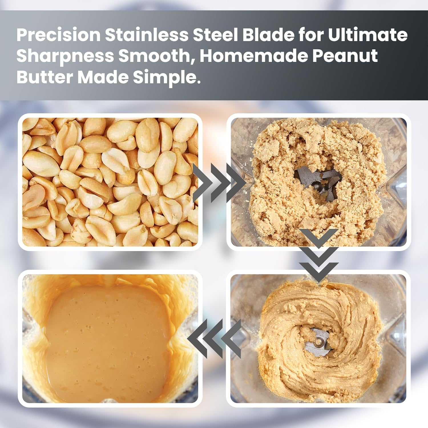 - Stainless Steel 6-leave Blades: Equipped with heavy-duty 6 aerospace-grade blades, it boasts high hardness and corrosion resistance, ensuring a stable cutting performance throughout complex chopping processes. Effortlessly transforming not only ice cubes, nuts, and frozen fruits into fine particles