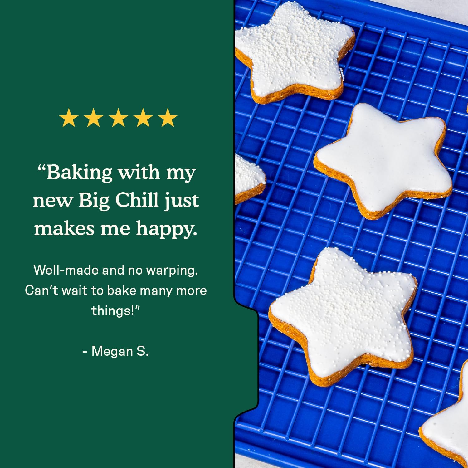 - [ HALF-SHEET PERFECT FIT ] Measuring 16.25" × 11.25", Big Chill nests snugly inside Great Jones’ Holy Sheet or any standard half-size pan.Instantly convert bakeware into a multi-tasking wire rack for crisping, cooling, and glazing.