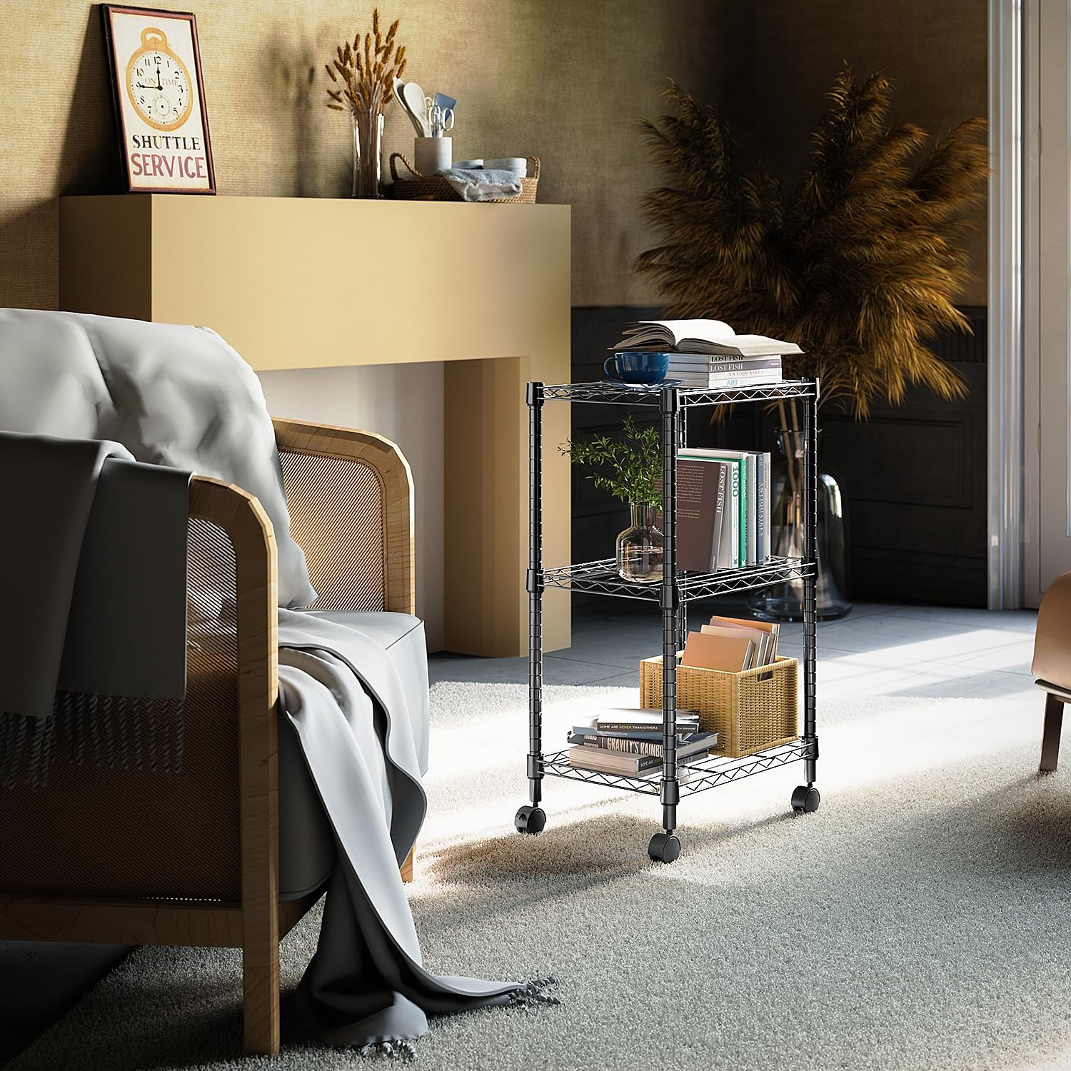 3 Tier Shelf Metal Storage Shelves Wire Rack Closet Organizers with Wheel for Garage Kitchen Bathroom Laundry Black 11.8" D x 17.7" W x 29.8" H