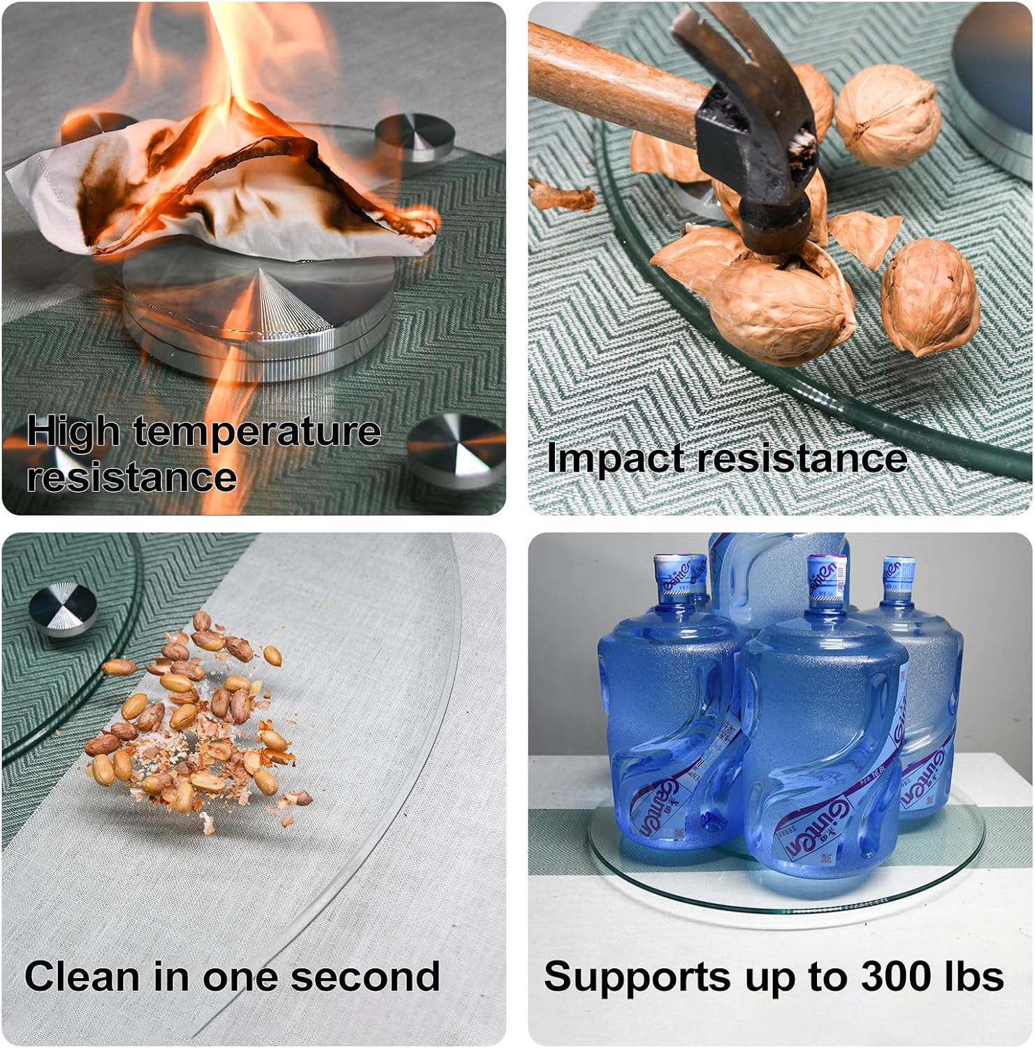 40" Heavy-Duty Lazy Susan Turntable - 1/3" Extra-Thick Tempered Glass - Silent 360° Spin for Dining Table & Kitchen