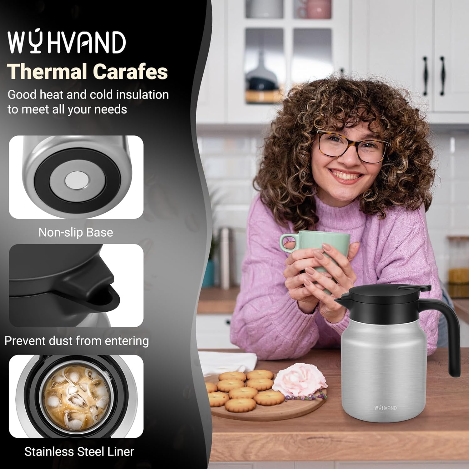 - Double-wall Vacuum Insulation: Perfect for hot water,hot cocoa, milk, or coffee, this double-wall vacuum insulated coffee carafe features advanced insulation to keep your drinks at the ideal temperature for hours