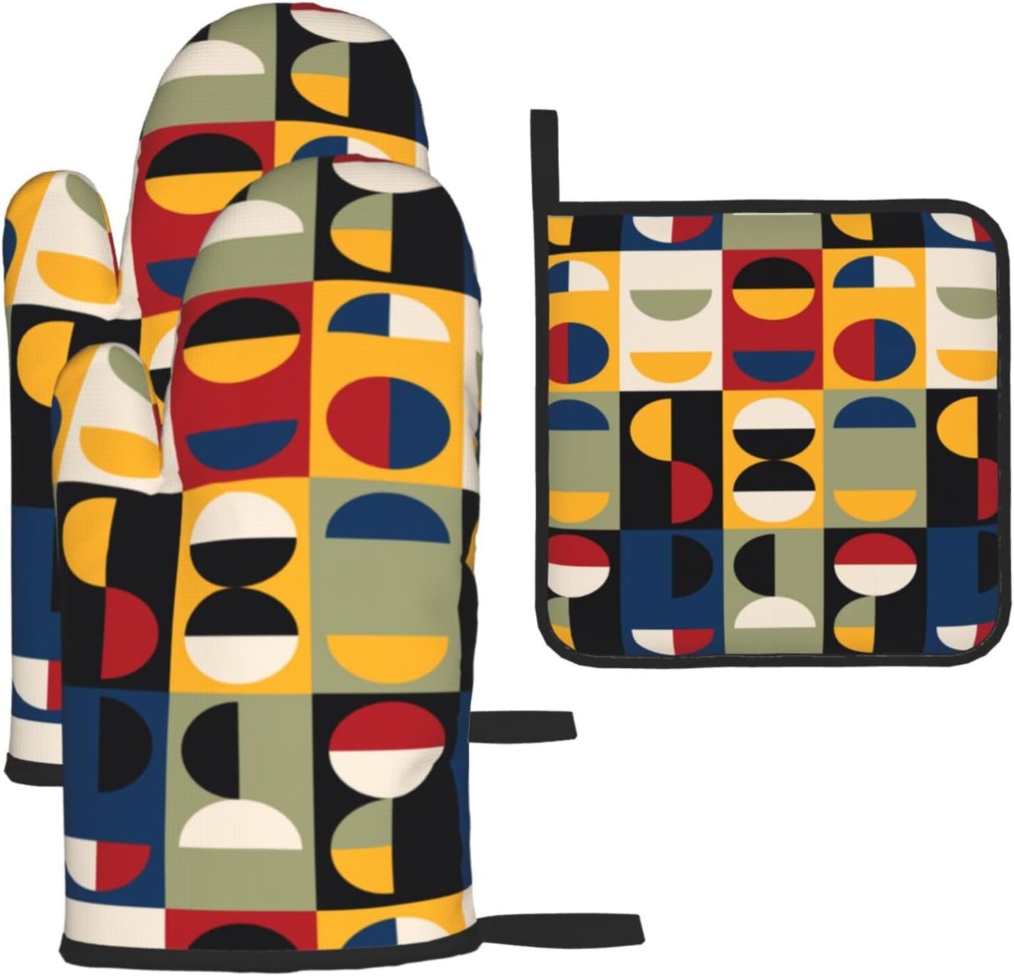 Retro Mid Century Modern Oven Mitts and Pot Holders Set Vintage Decorative Heat Resistant Microwave Oven Gloves for BBQ Baking Grilling Cooks Kitchen Decor 3 Piece