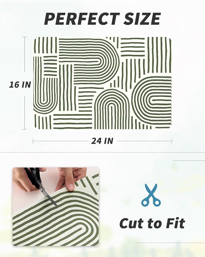 AMOAMI Coffee Mat Hide Stain Rubber Backed Absorbent Dish Drying Mat for Kitchen Counter - Fits Under Coffee Maker or Machine - Green Line 16x24