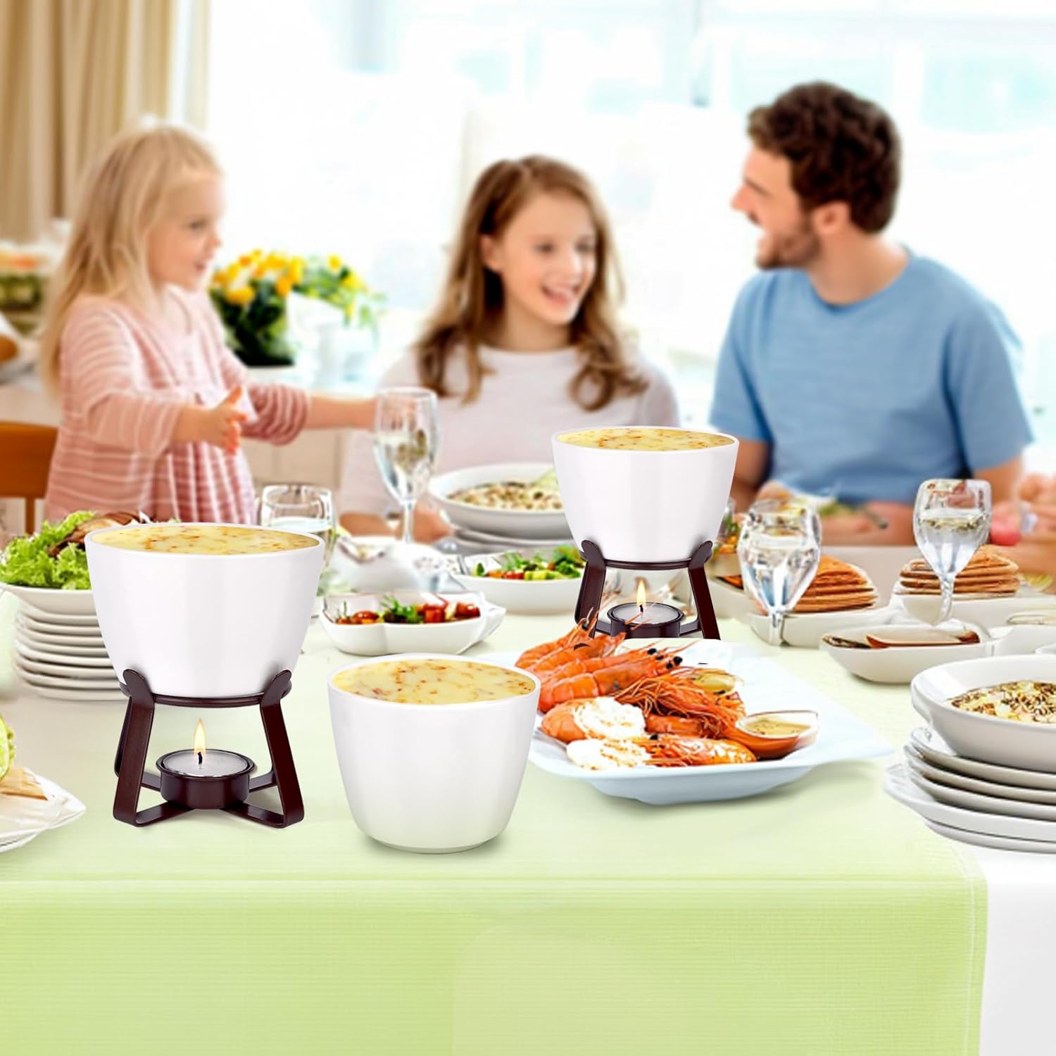 - 【Stylish Simplicity&Flat Metal Bracket Design】Classic whtie,bright and smooth glaze,never get out of style;Flat metal bracket design increases the contact area, so that ramekins can be securely fixed on the bracket without worry about butter spilling or tipping over;The same size bowls can be strictly stacked,easy stacked without taking up space. It's stylish and beautiful,which can enhance the overall visual effect.Versatile Butter Warmers would be a great gift for the party-lovers,bake-lovers