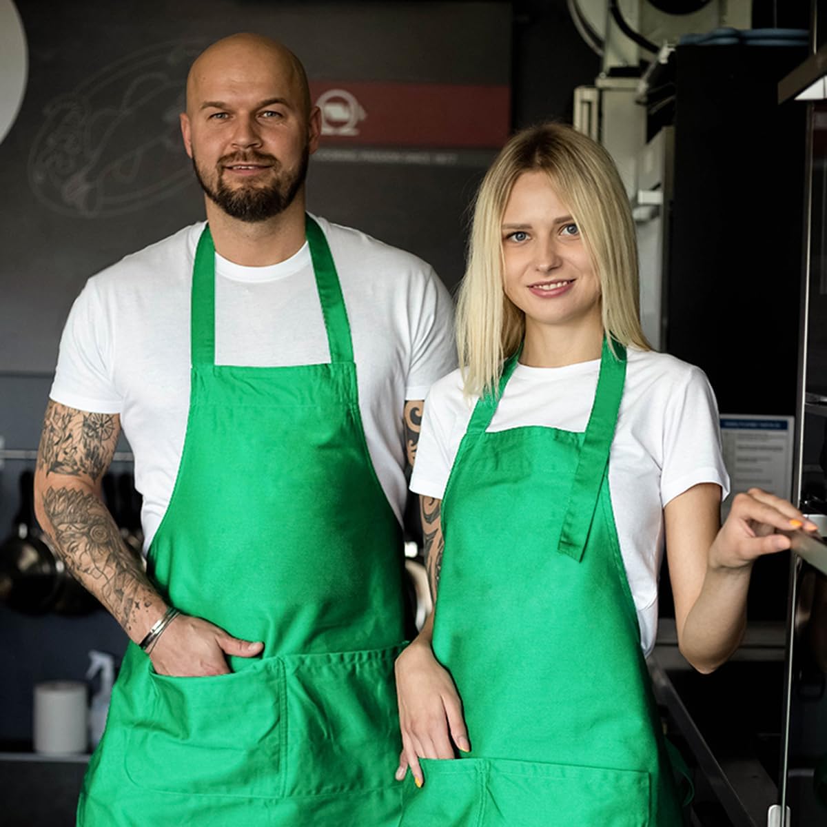 - 【Value Pack】: 4 Packs apron bulk set is the best value for bib aprons. These aprons are available with 2 pockets as well as 3 pocket. Made for heavy duty restaurants at a price convenient for home use