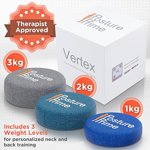 Vertex Weighted Cushion Forward Head Posture Corrector for Women Men - 3 Size Options Neck Workout Equipment Set - Head Neck Straightener Back Alignment for Home - No straps needed