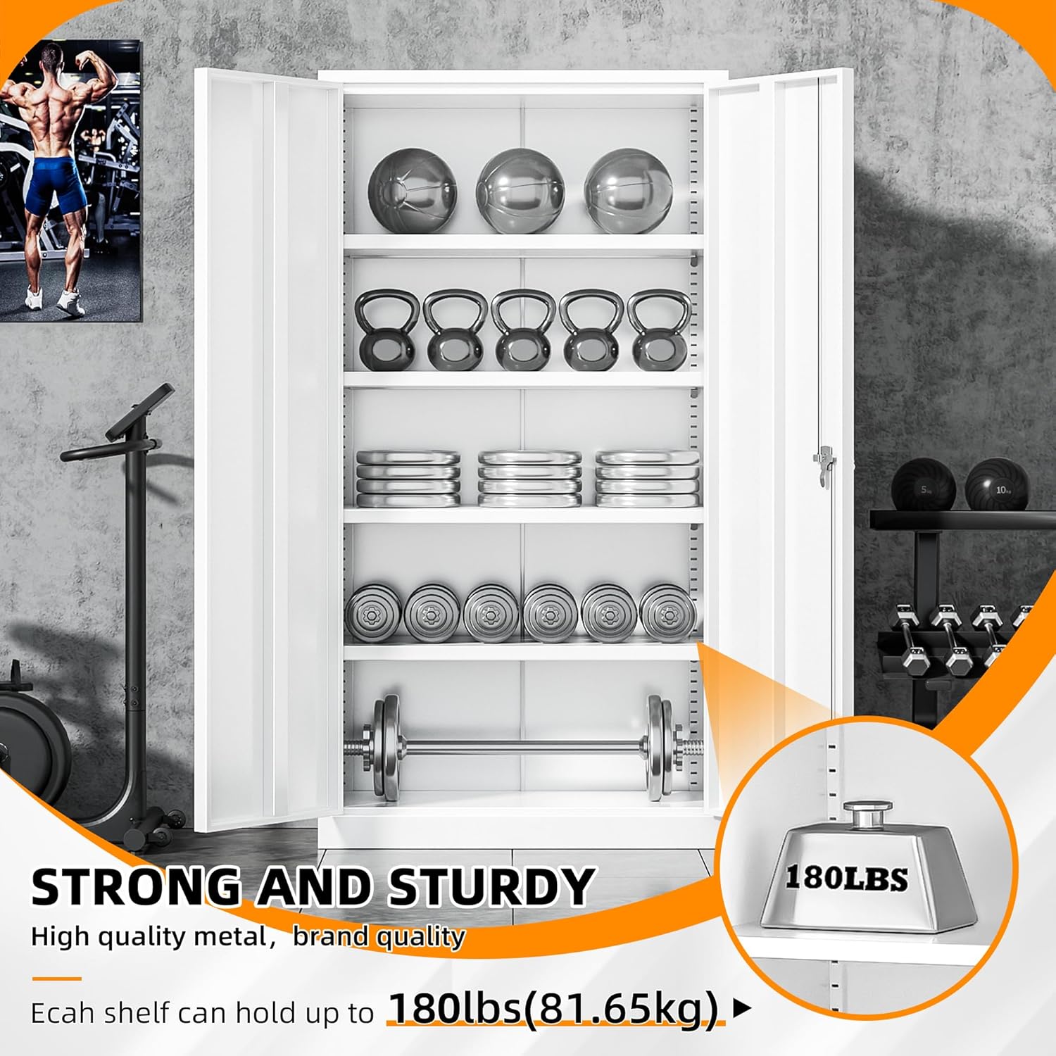- 【Heavy-duty metal structure】 Intergreat white heavy duty metal closet cabinet is made of cold rolled steel with a thickness of 0.8mm and reinforced construction which makes the white metal cabinet with lock sturdy and durable. The white office storage cabinet also adopts a new high-quality powder coating, which is scratch resistant, wear-resistant and easy to clean. The steel locking cabinet is more safe and reliable, and has no peculiar smell.