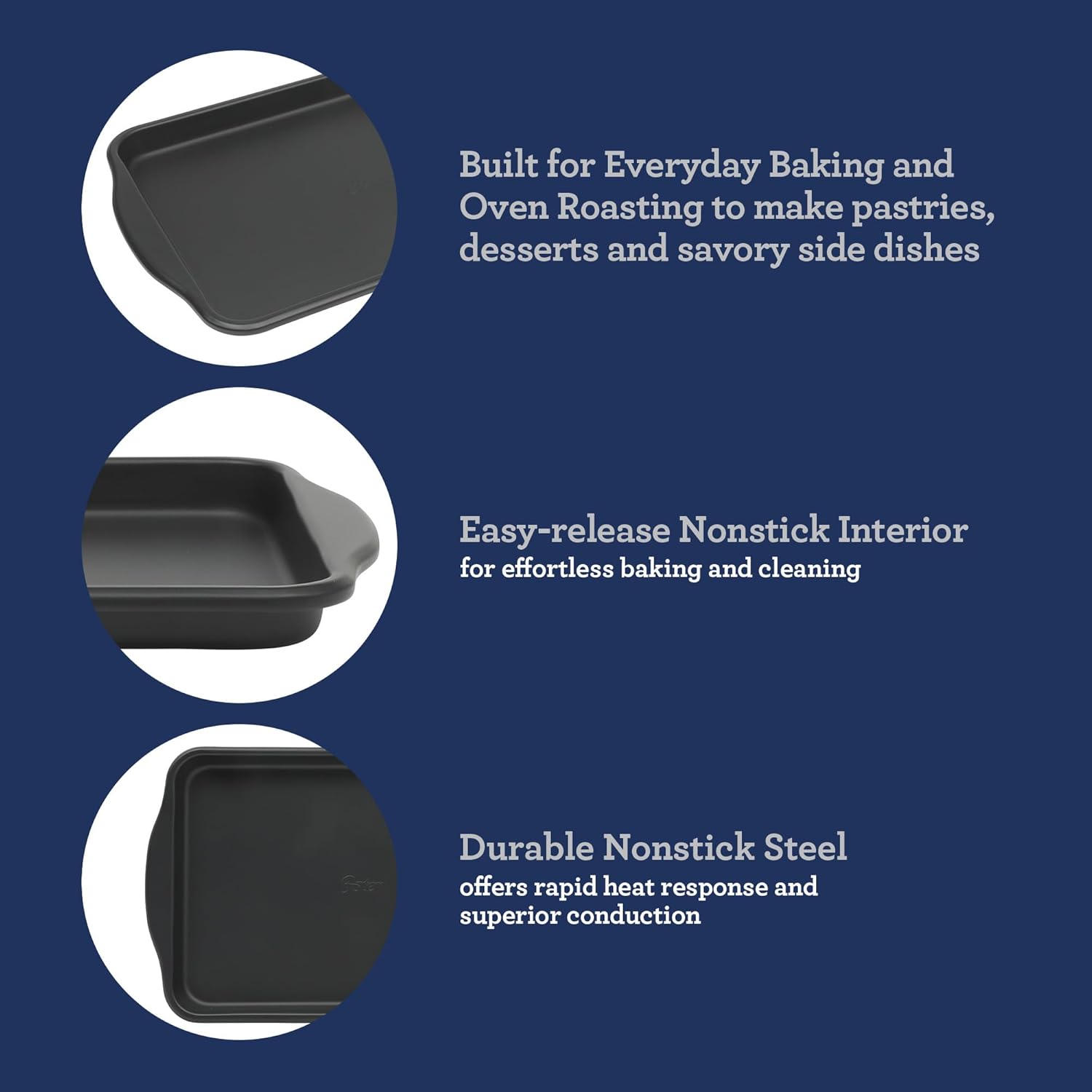 - CARBON STEEL CONSTRUCTION: Durable carbon steel bakeware offers rapid heat response and superior conduction for even textures and consistent flavors