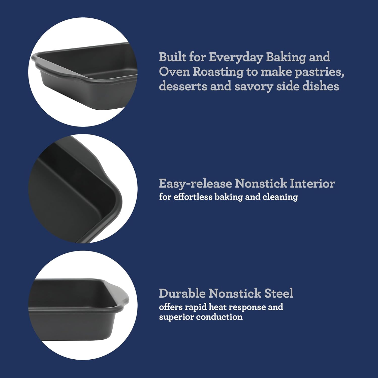 - EASY-RELEASE NONSTICK PERFORMANCE: Perfect for making pastries, desserts and side dishes, this cake pan is easy to clean and is designed to everyday use