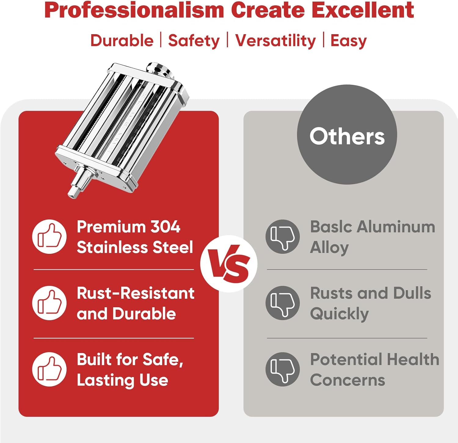 - Engineered from premium alloy and stainless steel, the pasta maker attachment for kitchenaid mixer is built to last, outshining flimsy plastic counterparts. Experience the reliability of a tool that stands the test of time, ensuring your pasta-making sessions are nothing short of exceptional.