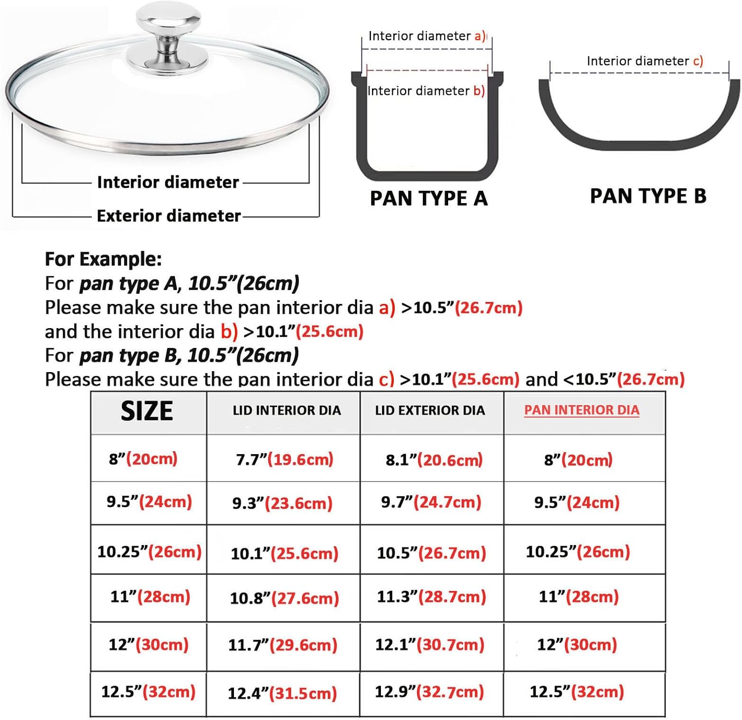 - Style : Glass Lid for Frying Pan, Saute Pan, Tempered Glass Cover with Heat Resistant Stainless Steel Rim, Handle Glass Lid for Frying Pan, Saute Pan, Tempered Glass Cover with Heat Resistant Stainless Steel Rim, Handle