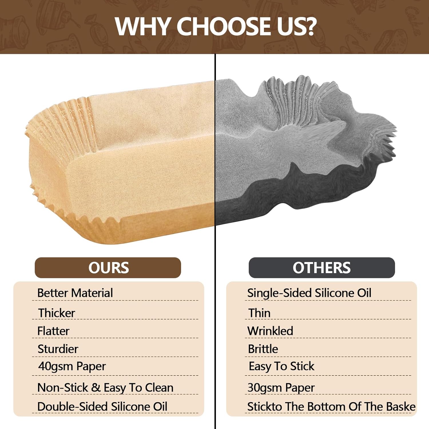 - 【Convenient to Use】These disposable air fryer liners are designed with a rectangular 8.5'' x 5.5'' pan shape that does not need to be torn, folded, cut or bent and can be placed directly into the fryer when ready to cook. Keep your fryer clean and save time and effort