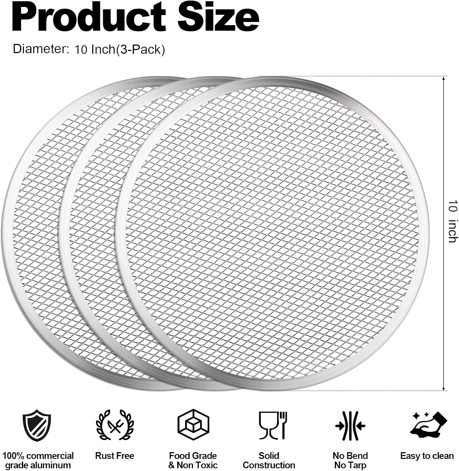 3 Pcs Pizza Screen, 10 Inch Pizza Pan for Oven, Nonstick Pizza Tray for Oven, Dishwasher Safe & Microwave Safe (10inch)
