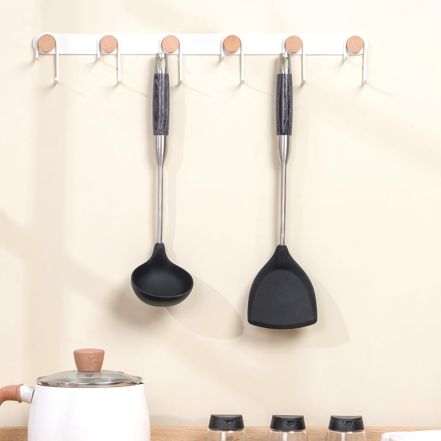 - Unique design cooking utensils : Wooden handle combination of 304 stainless steel and food-grade silicone,special and durable