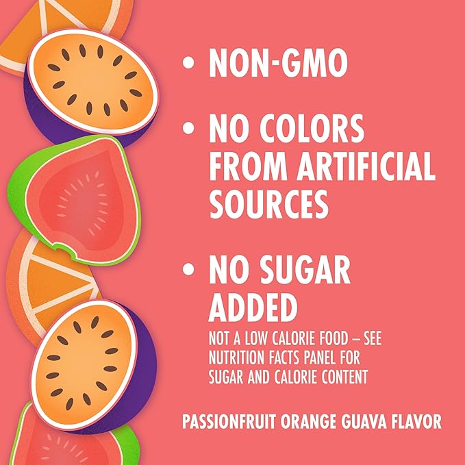 - A passionfruit, orange and guava flavored fruit and vegetable juice blend infused with natural energy from black and green tea