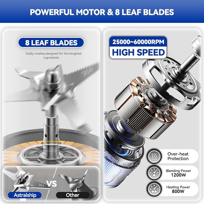 - Safety is Astralship number one priority - Smart Safety – E3 Overheat Protection – After heating cycles, the base will warm up (normal and safe). If the motor is overloaded, the E3 error code appears and power is cut off. Just let the blenders cool down for 1–2 hours before reuse. Built-in protection ensures long-term use and safety.