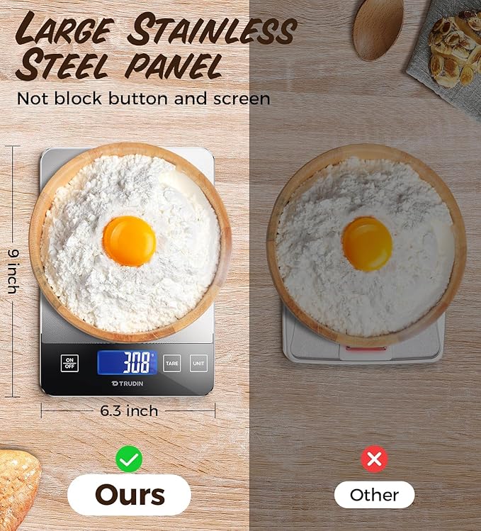 NASA-Grade 33lb Digital Kitchen Scale, Precisely Measures Grams and Ounces for Baking and Cooking, Waterproof Tempered Glass (Bright Black)