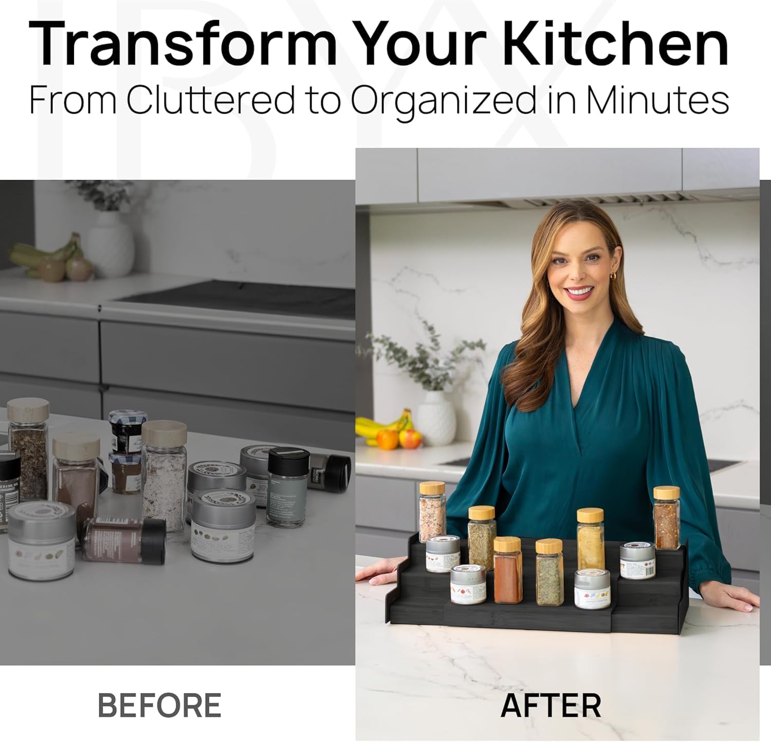 - šššššššššššš - Ibyx bamboo shelf organizer provide ample storage for organizing spices, herbs, cans, medicine, make-up accessories and other small items. Its compact design allows for versatile use in any room of the house. Stay organized and clutter-free with this functional & stylish bamboo spice rack!