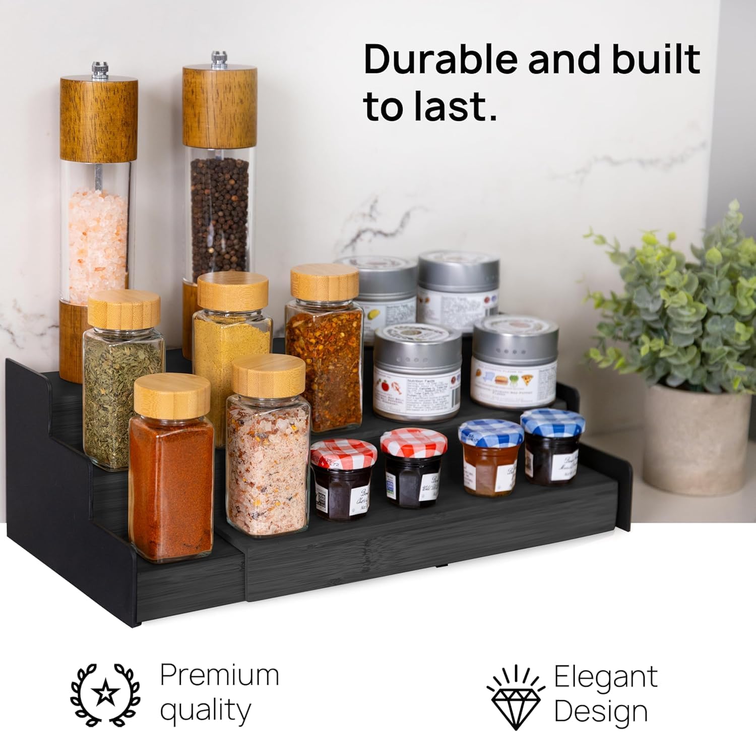 - šššššš & š ššššššššš - This 3-Tiered Spice Rack Organizer helps you maximize your cabinet & countertop storage. Two raised sides effectively prevent jars and containers from tipping over. Keep your spices organized & easily accessible without taking up too much space. A must-have for any kitchen!